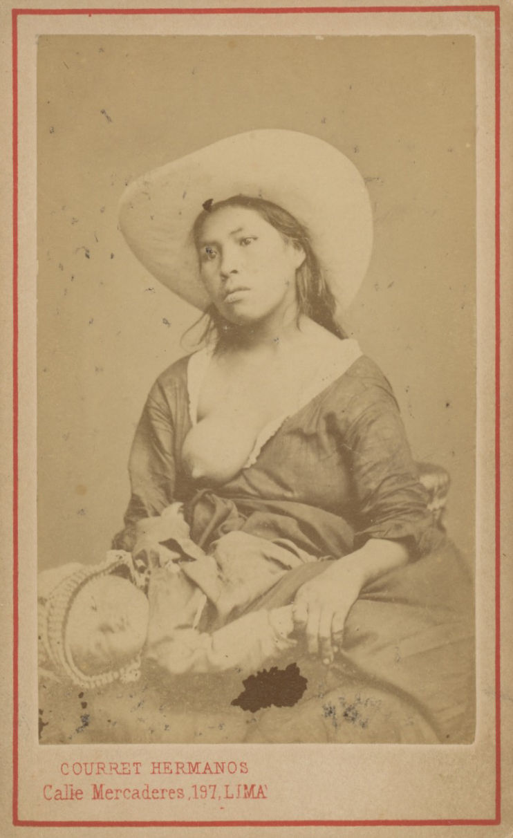 Pair of Carte-de-Visite Portraits of Peruvian Women, One Nursing a Child, c. 1870s