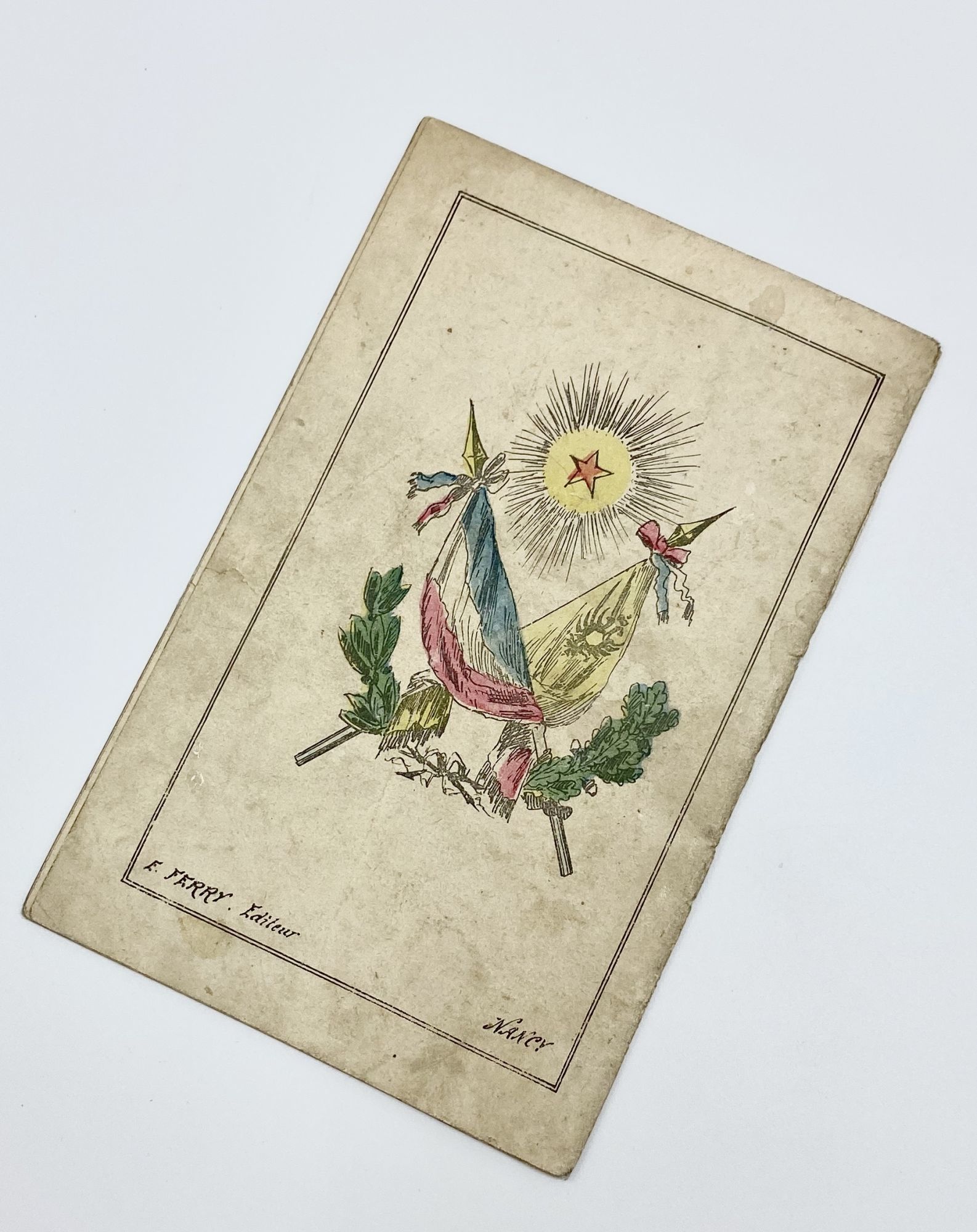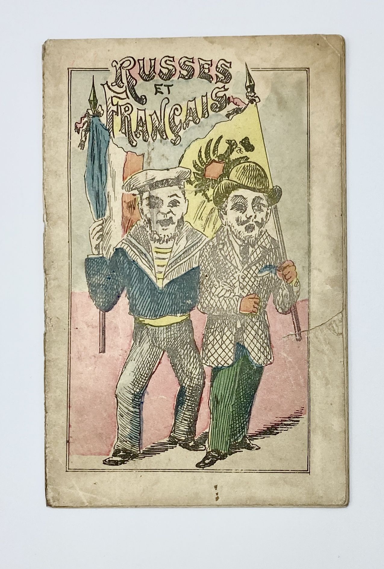 Nancy: E. Ferry, 1893. Very good.. Satirical novelty pamphlet marking the Russian diplomatic visit to Toulon, France during the formation of the Franco-Russian Alliance, a key development in the lead up to World War I. In the late 1880s and early 1890s, Germany allied with Italy and broke its alliance with Russia, leading Russia to seek an alliance with France. The Franco-Russian Alliance formed after two diplomatic visits, first to Kronstadt and then to Toulon.