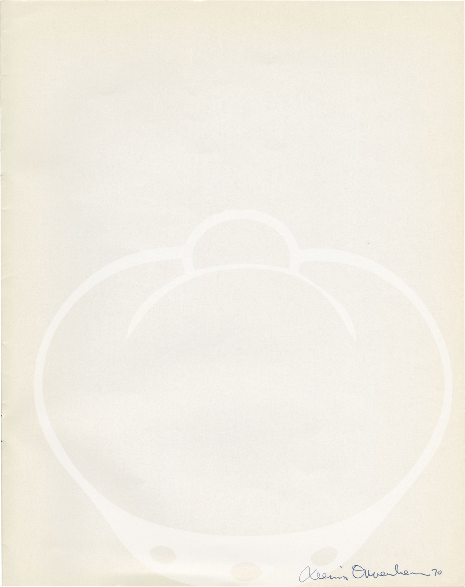 N.p.: N.p., 1970. Vintage program for an unidentified 1970 exhibition, SIGNED by Dennis Oppenheim on the bottom verso of rear wrapper, "Dennis Oppenheim 70."