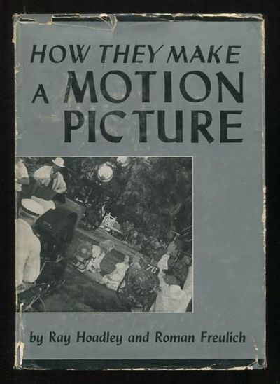 New York: Thomas Y. Crowell Co.. Very Good in Good dj. 1939. First Edition. Hardcover. (price-clipped) [book is moderately shelfworn, minor bumping and slight fraying at extremities; jacket is scuffed and heavily edgeworn, with numerous small tears and shallow chips]. (B&W photographs) A nice nuts-and-bolts look at the behind-the-scenes activities involved in the production of Hollywood films, illustrated with off-camera photos -- which unless otherwise credited were the work of Roman Freulich, a leading Hollywood still photographer who was employed at Universal Pictures from the mid-1920s until the mid-1940s. (Author Hoadley was also a Universal man, having worked his way up to being a publicity man.) .