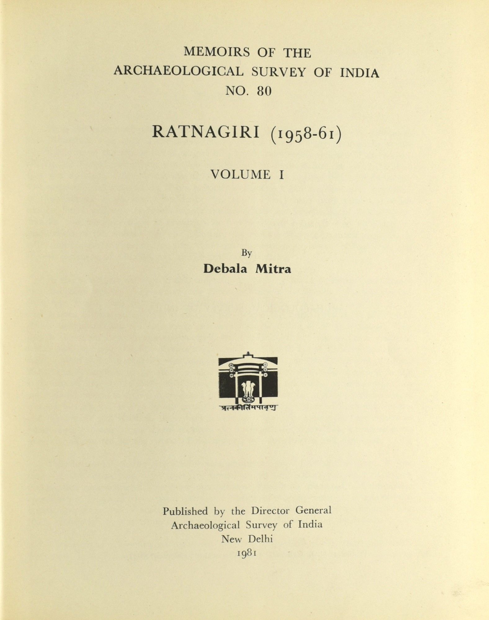 [INDIA] [ARCHAEOLOGY] RATNAGIRI. (1958-61). MEMOIRS OF THE ARCHAEOLOGICAL SURVEY OF INDIA NO. 80. VOLUME I & 2. (2 VOLUMES)