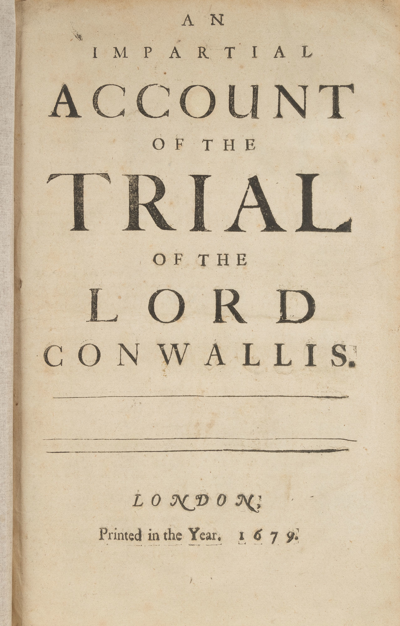 An Impartial Account of the Trial of the Lord Conwallis. London, 1679