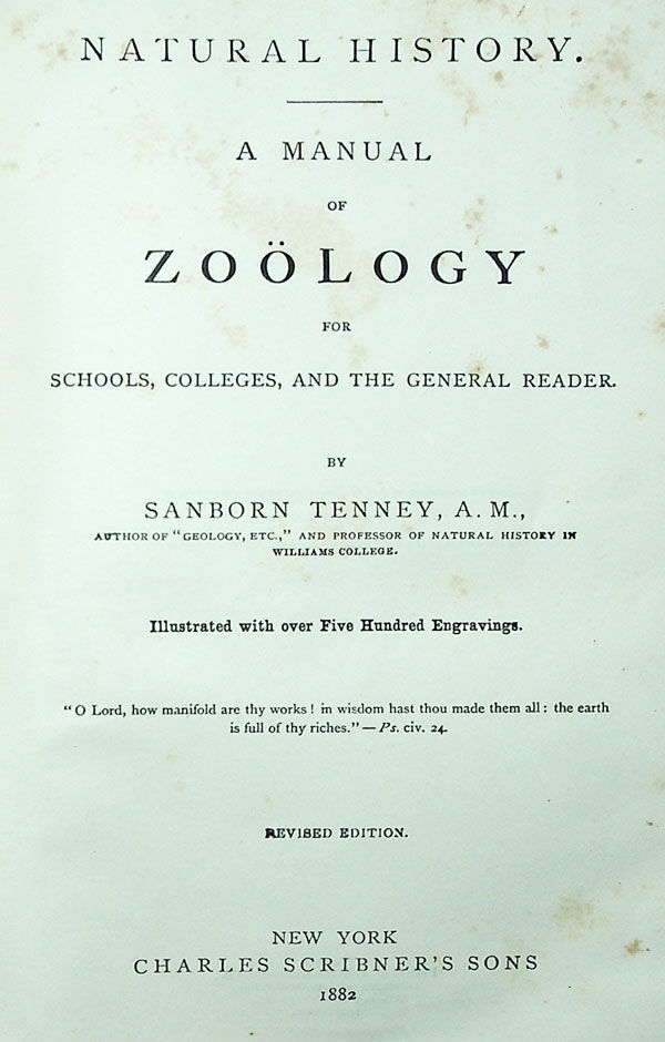 New York: Charles Scribner's Sons, 1882. Revised Edition. Octavo (20cm). Original brown cloth, boards blindstamped, titled in gilt, all edges marbled; yellow endpapers; xi,[1],540,[2],XXIX, [1]pp; numerous in-text wood engravings. Straight and sound, but rubbed, occasional foxing: Good. First published in 1866, Tenney's textbook remained in print for decades.