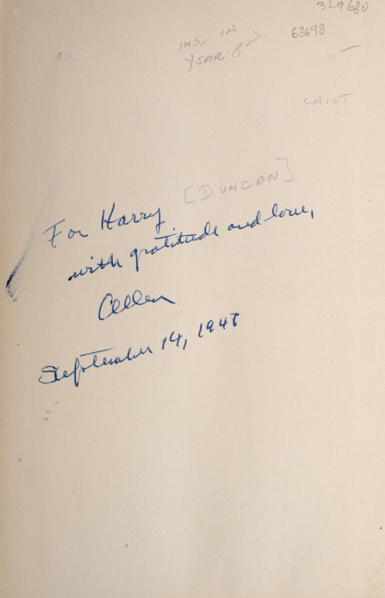New York: The Swallow Press and William Morrow & Company, Publishers, 1948. First edition. xviii, 379pp. 8vo. Orange cloth. Spine lightly faded, with one-inch tan stain at base of spine, bottom and fore-edge have very faint tide mark, else a very good copy, with text quite fresh and clean. First edition. xviii, 379pp. 8vo. Warmly inscribed by Allen Tate, to publisher Harry Duncan, on the front flyleaf, in year of publication: "For Harry [Duncan], with gratitude and love, Allen. September 14, 1948" [Harry Duncan, of The Cummington Press, published a number of books by Allen Tate (spanning four decades), including 'Sonnets at Christmas,' 'Fragment of a meditation: 1928,' etc.]. Harry Duncan published Robert Lowell's first book in 1947, after meeting him through Allen Tate, his godfather (the three men were converts to Roman Catholicism). A nice association copy.