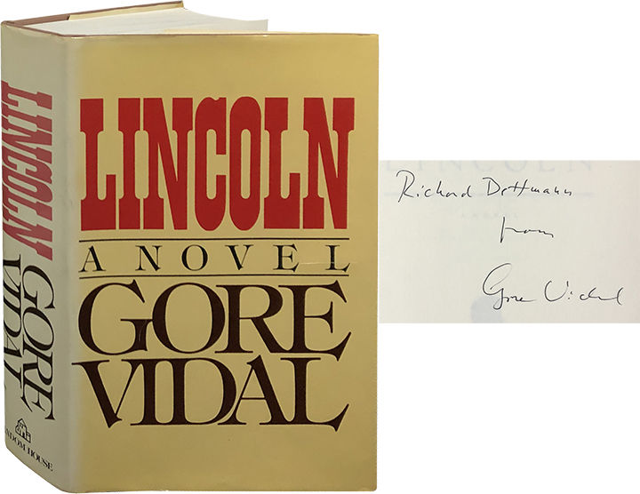 New York: Random House, 1984. First Edition. Hardcover. Fine/Fine. Inscribed by Vidal on the half-title page. Fine in a Fine jacket, unclipped ($19.95). Brown cloth with gilt and bronze lettering and rules on the spine and front board. Square and firmly bound, clean internally. Vidal's historical novel of Lincoln's presidency, part of his Narratives of Empire series.