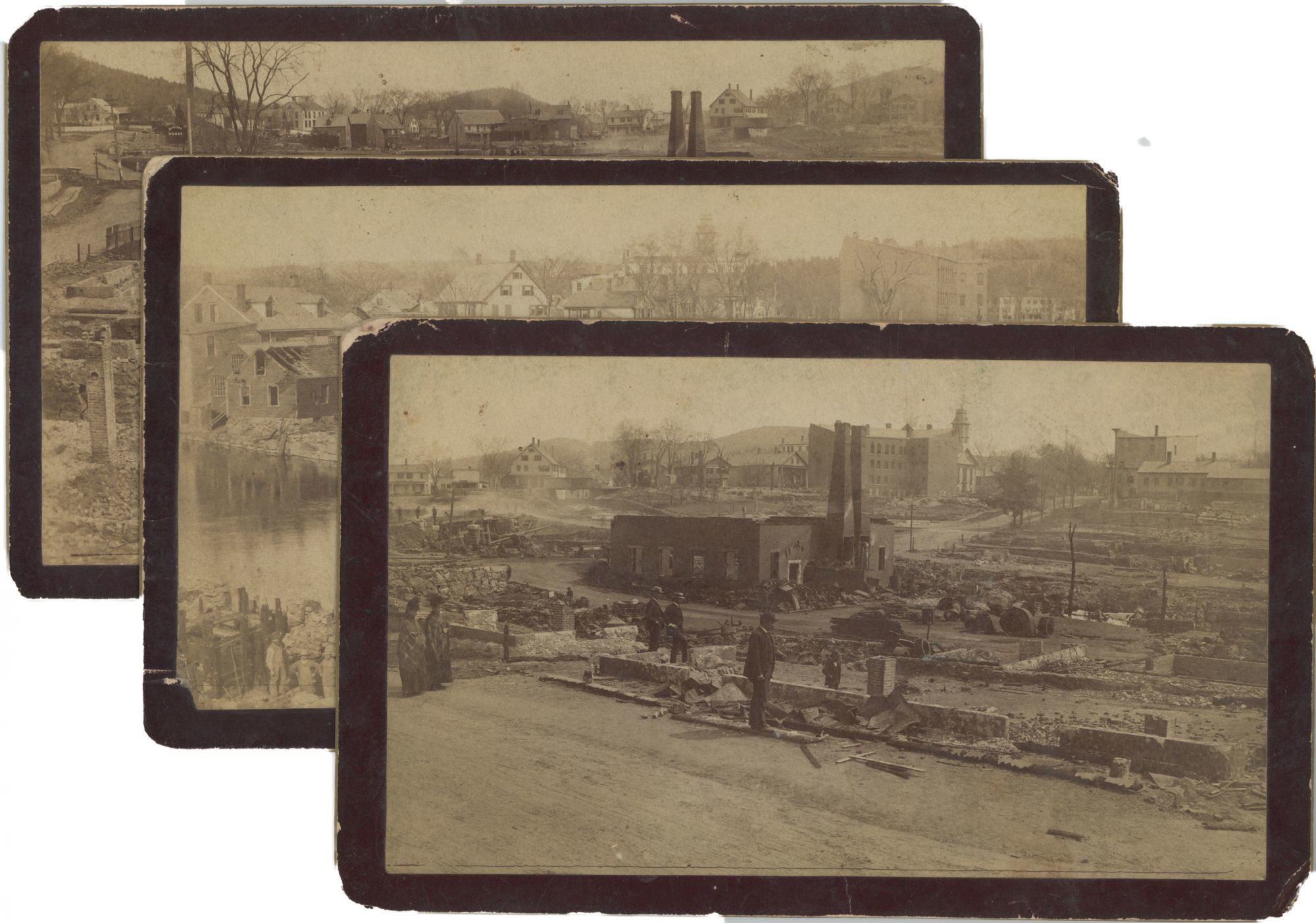 Five Cabinet Card Photographs of the Aftermath of the Fire in Lebanon, New Hampshire, 1887