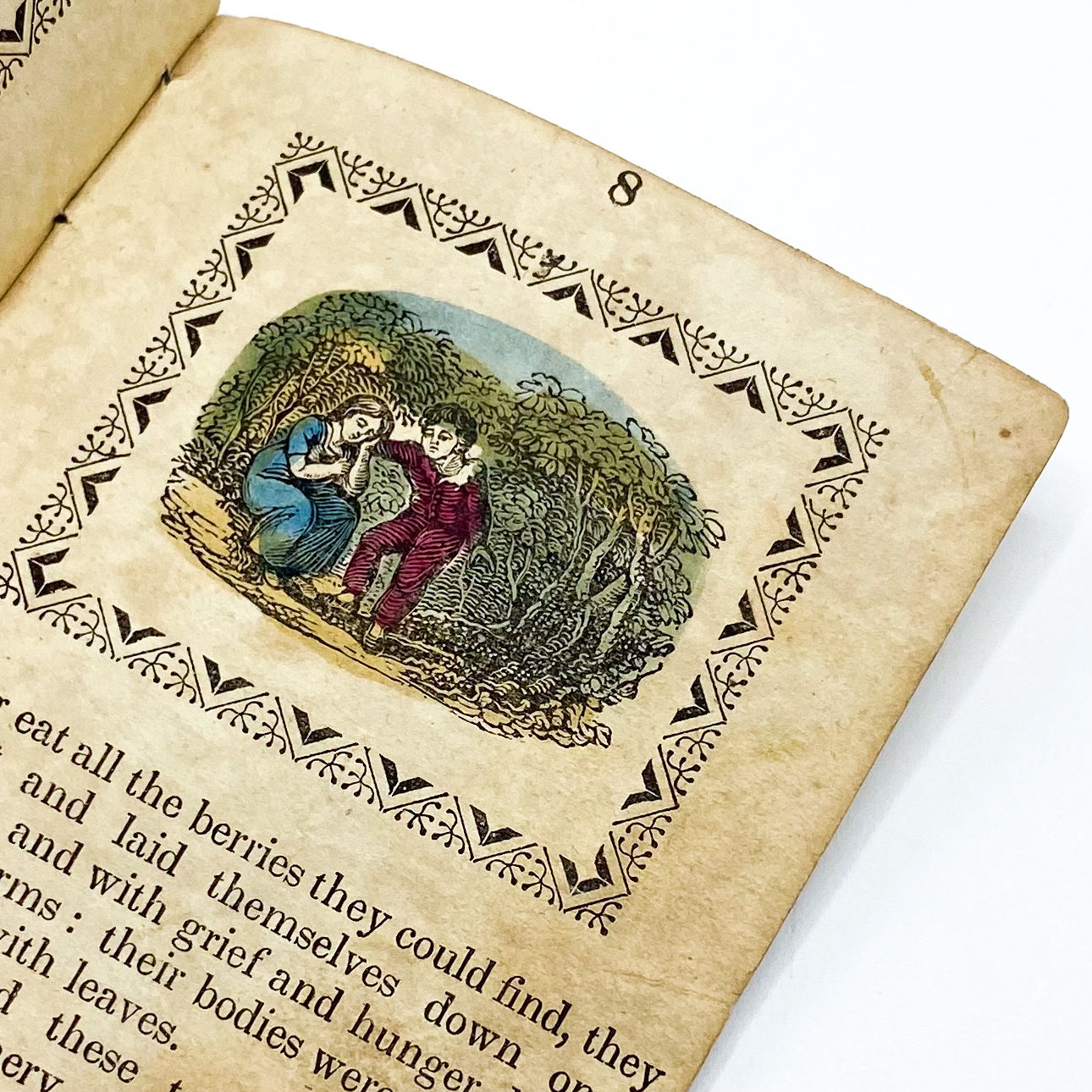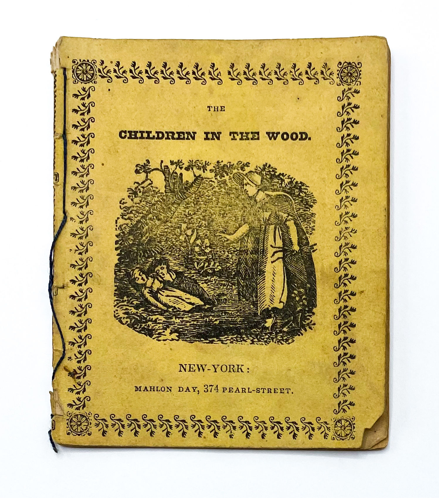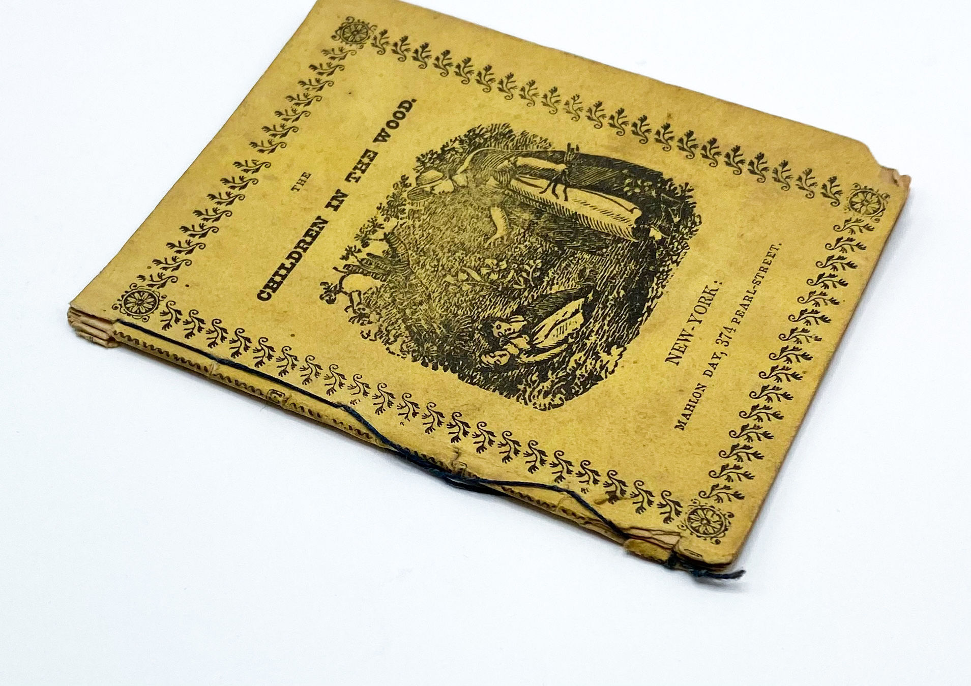 New-York: Mahlon Day, 1850. Very good.. First edition thus, from publisher Mahlon Day, of this traditional and tragic tale, with lovely hand-colored illustrations. Mahlon Day, a Quaker publisher, printer, and bookseller, was "one of the two printers who dominated the New York City children's book publishing scene in the early 19th century" (Modero). 4'' x 3.25''. Original yellow pictorial wrapper, saddle-stitched. Eight hand-colored woodcut illustrations. 8 pages, printed one side only. Contemporary owner name to verso of page 2. Vernacular sewn repair to spine. Wrapper with a bit of splitting to spine and light edgewear. Leaves with some soiling to margins. A sound example.