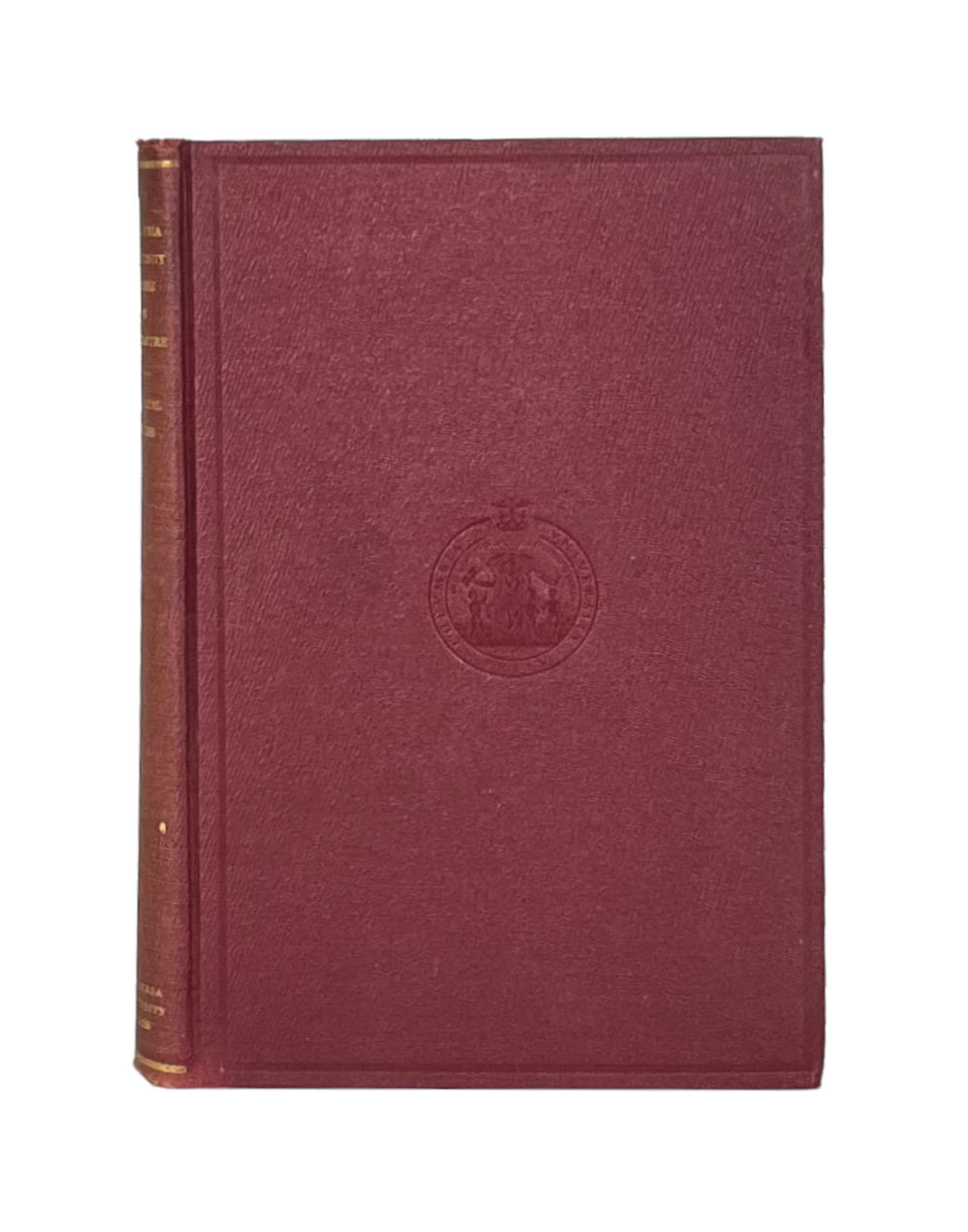 New York: Columbia University Press, 1930. Very Good. New York: Columbia University Press, 1930. First Edition. Octavo; xxvii, 378pp. Maroon cloth with gilt lettering to spine. Covers lightly rubbed at corners and spine ends, with a bit of fading to spine. Some humidity rippling to preliminary and terminal pages. Long tear lengthwise across 3/4 of pp. 21-22; almost severed, but with text still legible. Binding is sound and pages unmarked.
