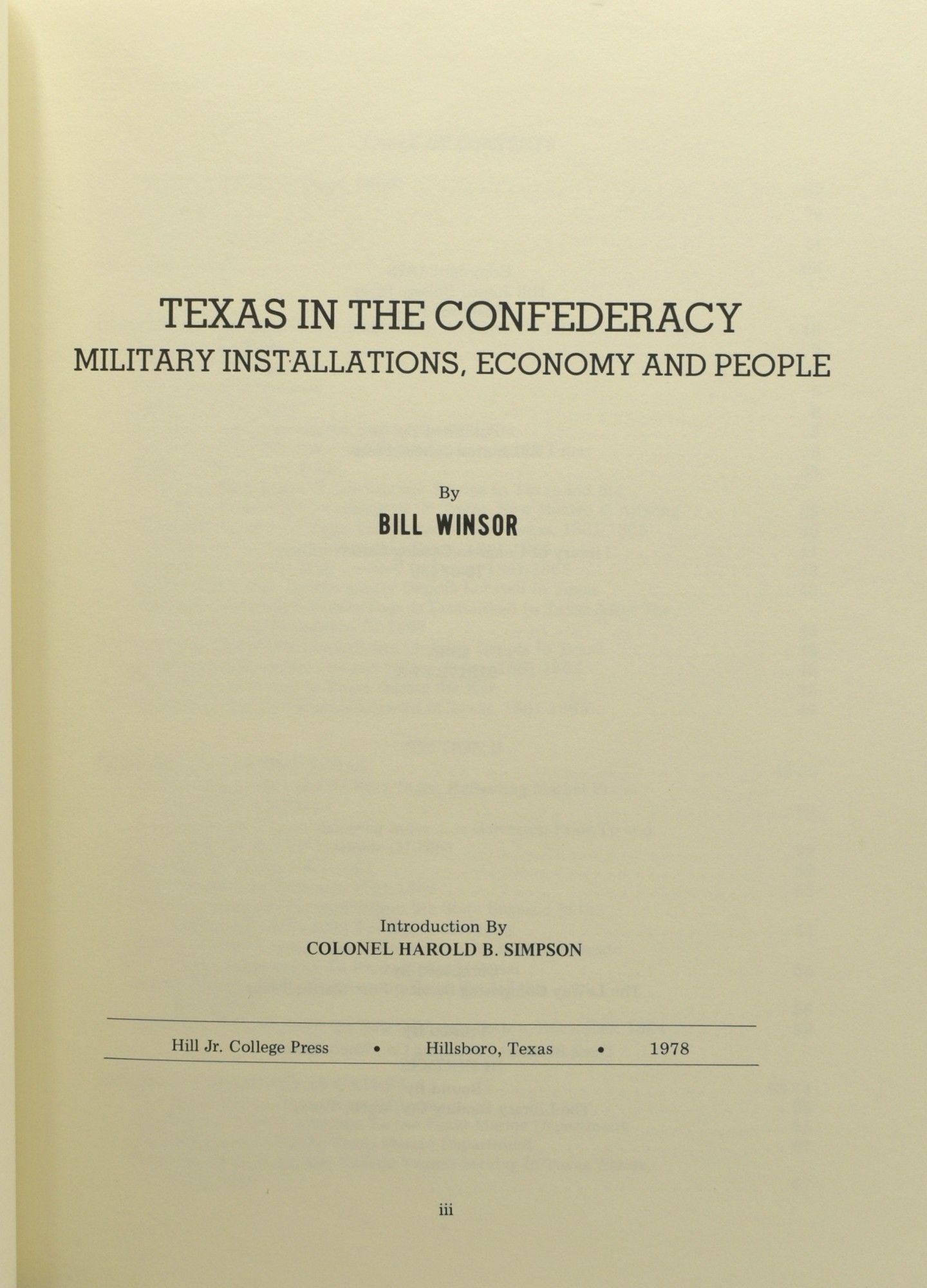Hillsboro Texas: Hill Junior College Press, 1978. First Edition. Hard Cover. Very Good binding/Very Good dust jacket. The publication date penned in red at the top of the front free end paper; otherwise a clean copy without any marks or writing. The dust jacket is bright, not price clipped and now protected in a new mylar cover. Very Good binding / Very Good dust jacket.