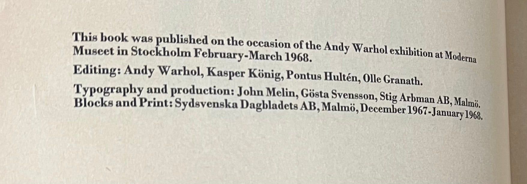 Andy Warhol. Published on the Occasion of the Exhibition at Moderna Museet in Stockholm, February - March, 1968
