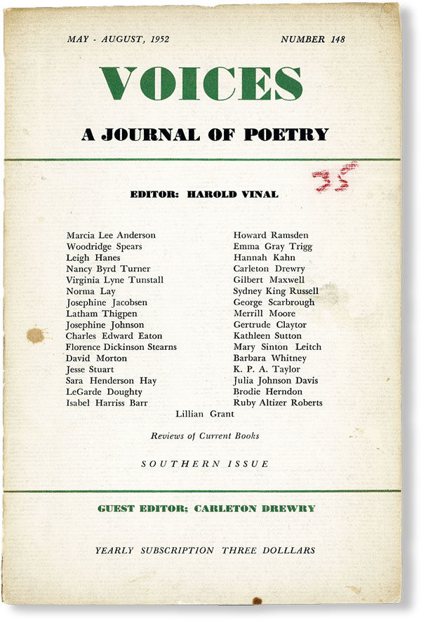 Voices: a Journal of Poetry. Number 148 (May - August 1952). "Southern Issue