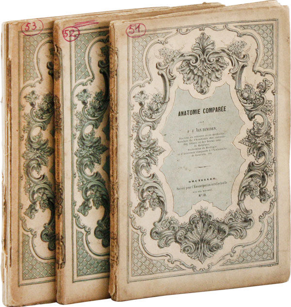 An illustrated popular work on comparative anatomy, in the elegant and ephemeral original paper wraps. From the Encyclopédie Populaire, 6ème Séries. Van Beneden (1809-1894) was a distinguished zoologist and professor at the Catholic University of Leuven, best known for his research on parasitic worms and marine biology.