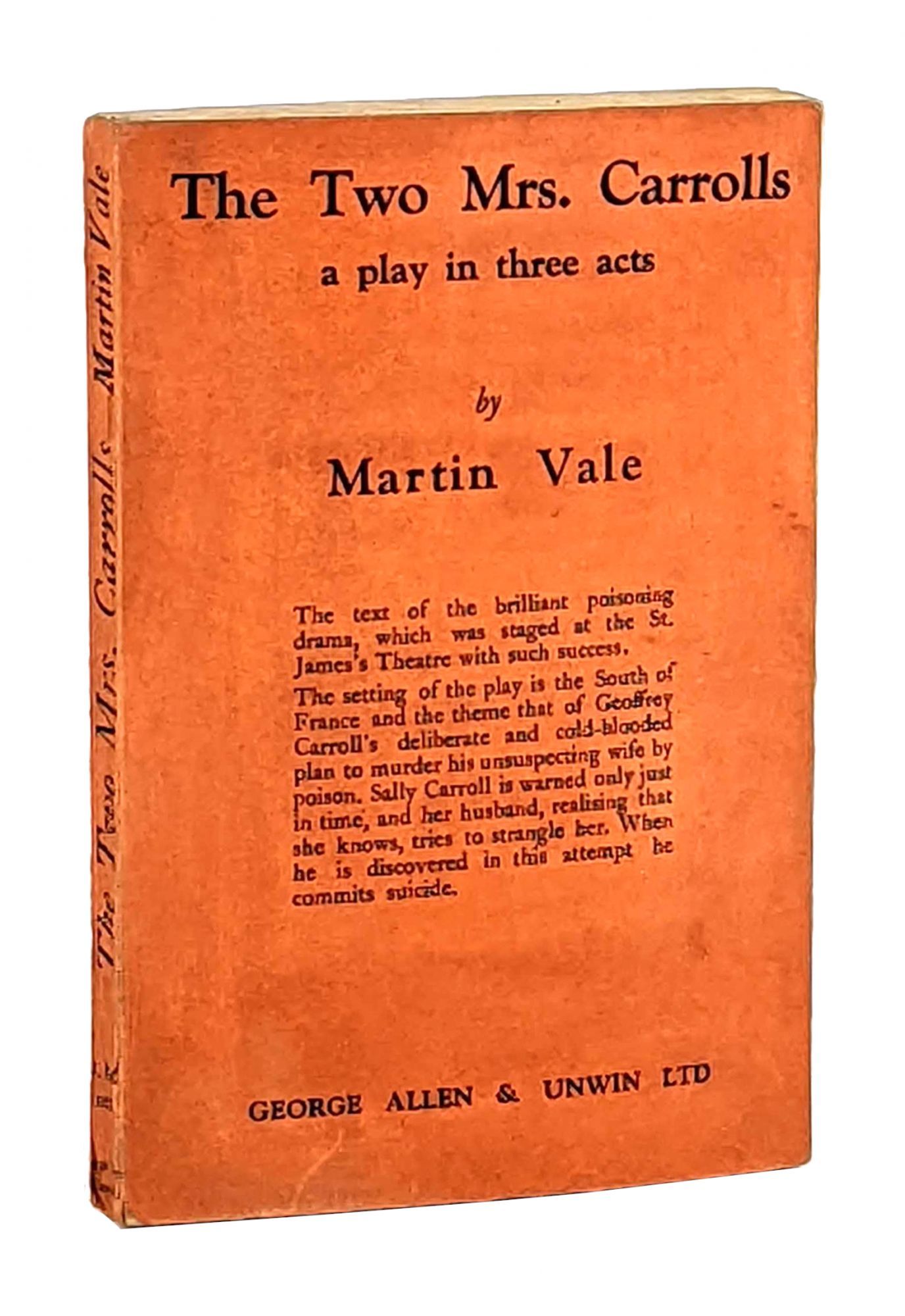 London: George Allen & Unwin Ltd, 1938. Very Good. London: George Allen & Unwin Ltd, 1938. Stated Second Impression. Octavo; 95 pp. followed by one page of advertisements. Bright orange wrappers with text in black. Covers show some general smudging and a bit of rubbing at spine ends. Opens easily between gatherings but binding is holding soundly. Pages clean and unmarked. Overall, a nice copy of a scarce work later adapted as a movie of the same name starring Humphrey Bogart.