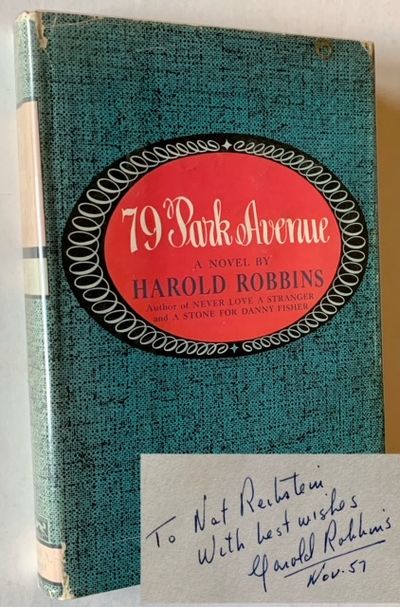 New York: Alfred A. Knopf, 1955. Boards. Very Good/Very Good. INSCRIBED BY HAROLD ROBBINS on the front free endpaper. A tight, solid copy to boot of the 1955 stated 1st edition. Clean and VG (a light band of offsetting along the top-edges, light fading along the spine) in a crisp, price-clipped, VG dustjacket, with light chipping at the spine ends and the tips, and fading to the spine. Octavo, an early effort by the future mega-bestseller, his 4th novel.