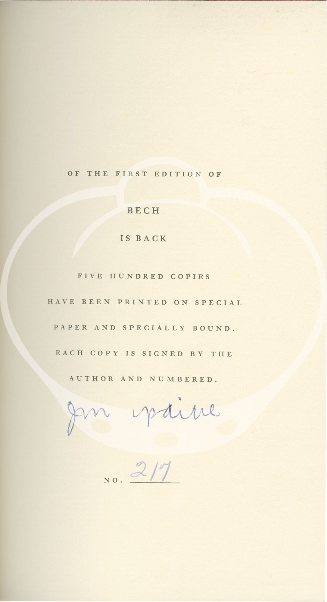 Bech is Back (First Edition, one of 500 copies signed by the author)
