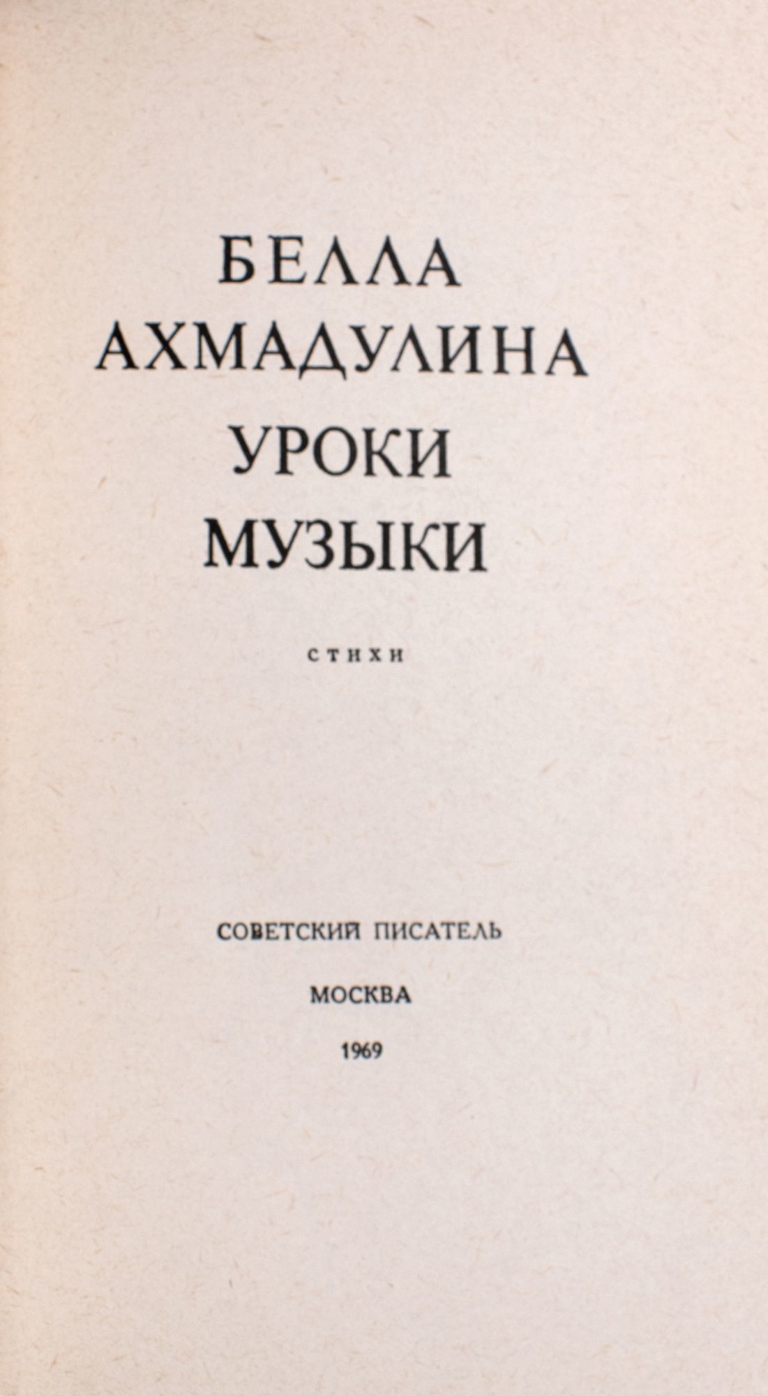 Moscow: Sovetskiĭ Pisatel', 1969. First edition. 160 pp. Small 8vo. Fold on last page, otherwise fine. First edition. 160 pp. Small 8vo. After her first book of poems Struna [String] (1962) was published, as a success, her work was criticized by the government as "superfluous and too intimate". It took her seven years to publish this, her second volume. Joseph Brodsky called her the best living poet in the Russian language.