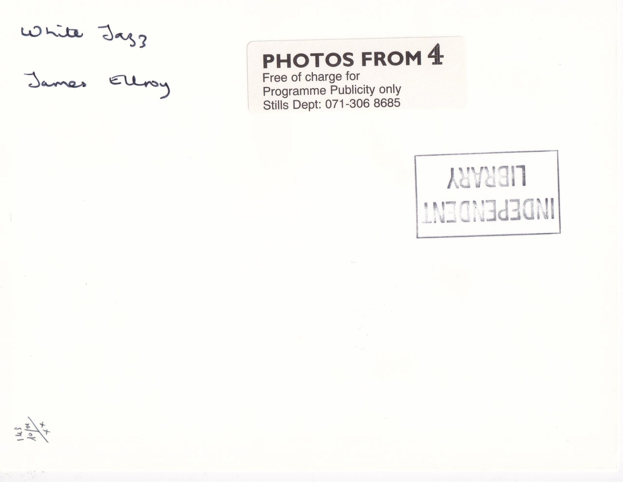 Photograph used as a promotional shot for the fourth novel in Ellroy's LA Quartet, "White Jazz," released in 1992.