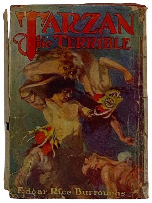 New York: Grosset & Dunlap, 1943. Reissue. Hard Cover. Good/Fair. 7x5x1. Monroe, Edmund; Palacios, Rafael. Heins TTe-4, Lukes TTE-11 in jacket variant 10. Very good book in well worn jacket. Owner bookplate on front endpaper, large open tear and several chips along jacket spine, several internal tears to jacket flaps, jacket rubbed and lightly creased. 1943 Hard Cover. 408, [2] pp. Red cloth, black titles. Edmund Monroe jacket art. 8vo. 'Tarzan's search for Jane leads to Pal-ul-don, a land of prehistoric monsters and tailed men.