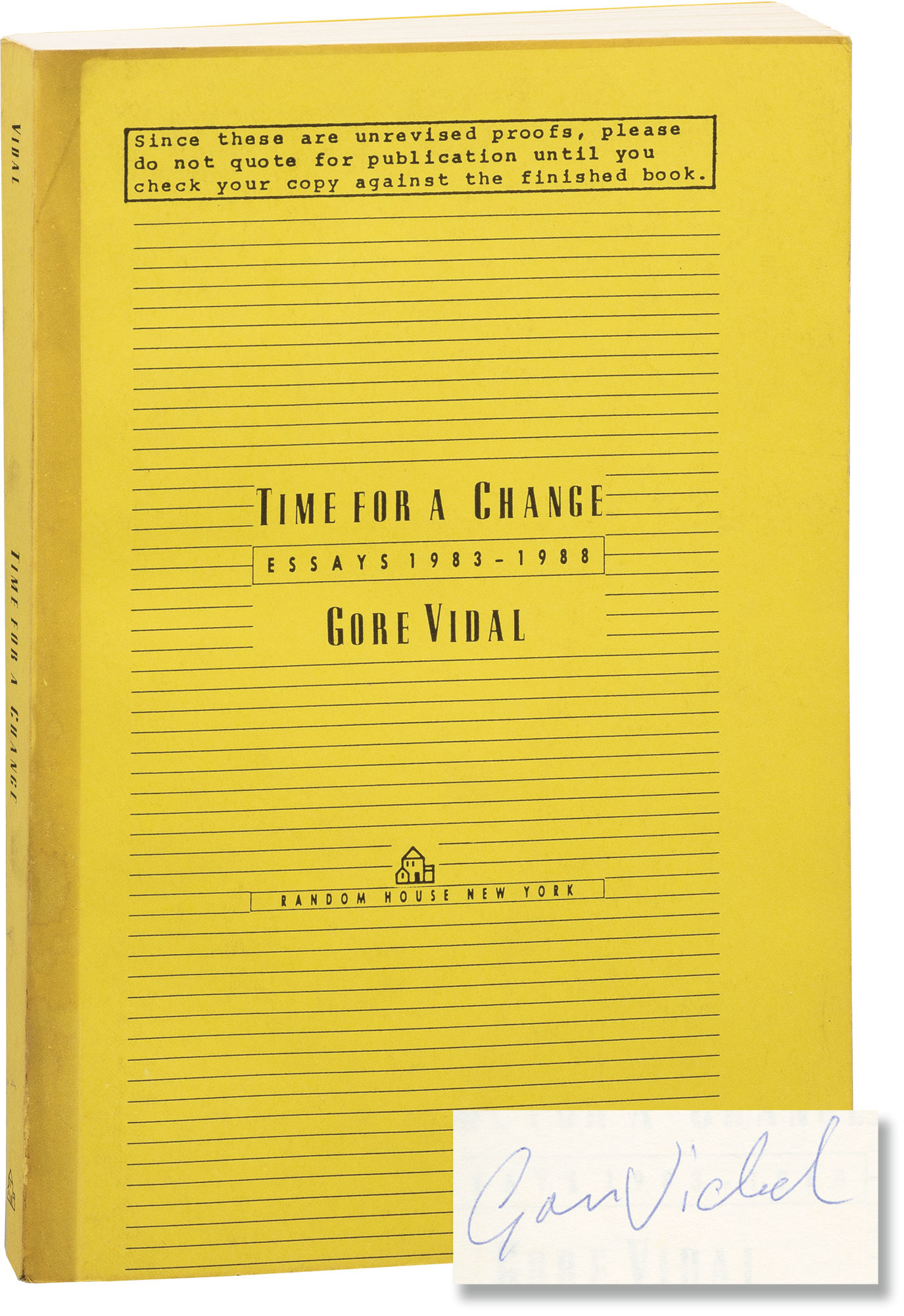 At Home: Essays 1982-1988 [Time for a Change: Essays 1983-1988] (Uncorrected Proof, signed by Gore Vidal)
