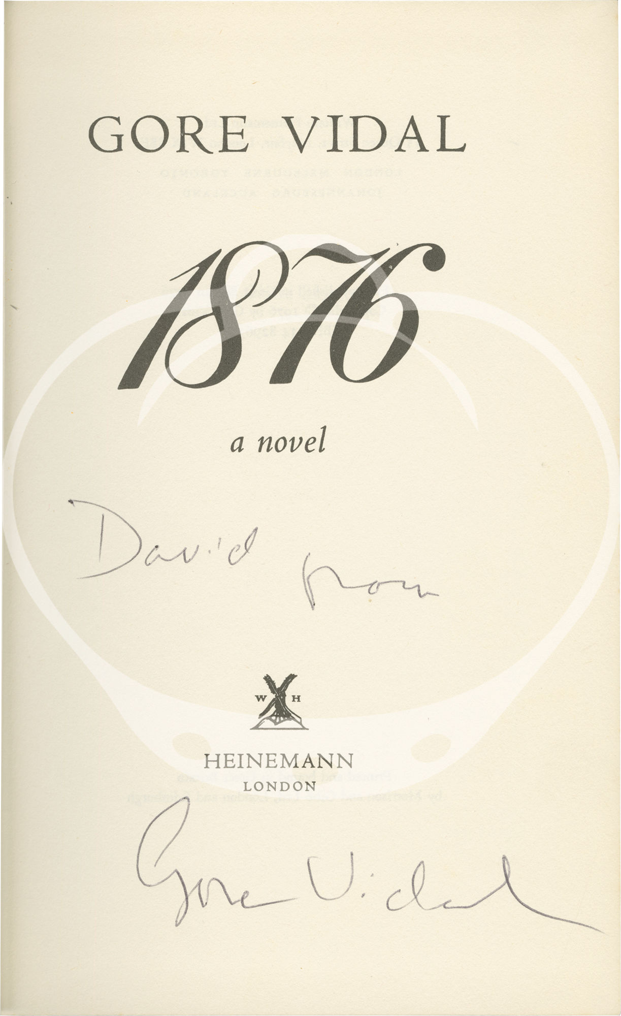 London: William Heinemann, 1976. First UK Edition. Briefly INSCRIBED by the author on the title page: "David / from / Gore Vidal."