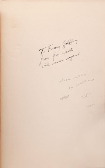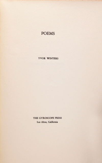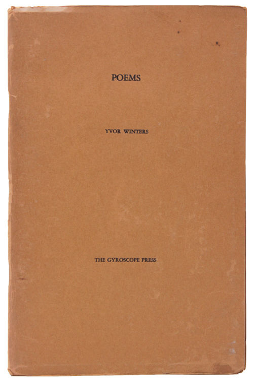 Los Altos, California: The Gyroscope Press, 1940. First edition. 56, [4]pp. Printed by hand on the author's press. 8vo. Brown printed wrappers, very good copy. First edition. 56, [4]pp. Printed by hand on the author's press. 8vo. Inscribed by Yvor Winters to poet Francis Golffing (husband of poet Barbara Gibbs, who was a student of Yvor Winters), on front flyleaf: "To Frany Golffing from Yvor Winters, with sincere regards." Winters has made a single correction to the text (on page 18). Francis Golffing has made some pencil and ink notes on the final two blank pages (about thirty words), and has made a few pencil scorings to the text.