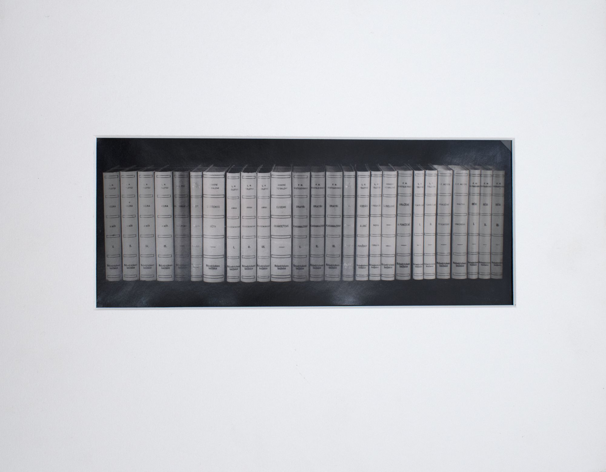 [Prague, 1920. Silver gelatin print. 1 vols. Oblong, 9-7/8 x 4-1/4 inches. Stamped on verso with studio stamp (Foto Sudek, Praha III, Djezd 20.), some superficial marks and rubbing on the corners, matted. Silver gelatin print. 1 vols. Oblong, 9-7/8 x 4-1/4 inches. A beautiful photograph of a shelf of books published by Melantrichova knižnice, the Czech publishing house, circa 1920, in the characteristic panoramic style of Josef Sudek.