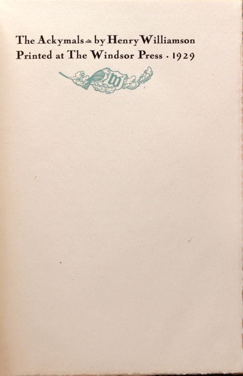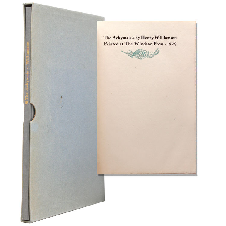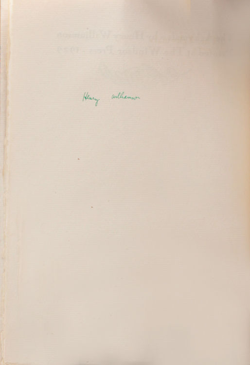 [No Place]: Windsor Press, 1929. First edition, limited to 225 numbered copies signed by Henry Williamson. pp. [vi], 24. 8vo. Small chip to cloth spine at foot and rear gutter, else a fine copy in publisher's slipcase box. The slipcase is slightly faded, else near fine. First edition, limited to 225 numbered copies signed by Henry Williamson. pp. [vi], 24. 8vo.
