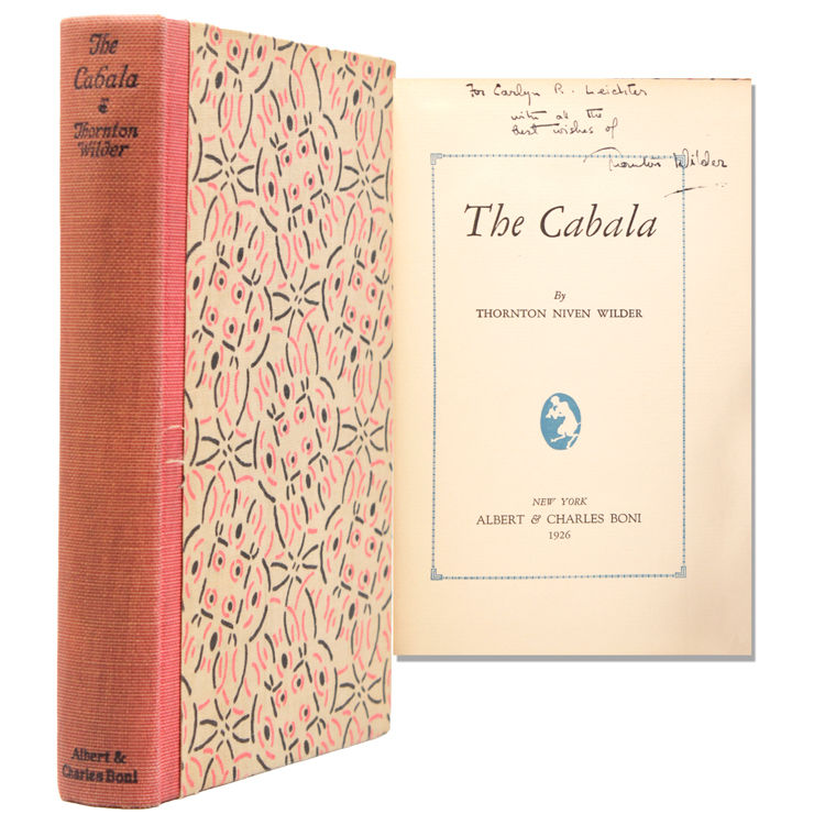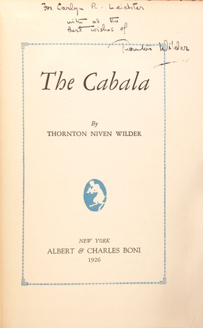 Inscribed and signed by Thornton Wilder: "For Carlyn R. Leichter with all the best wishes of Thornton Wilder" (on the title page). Recipient's large bookplate on front flyleaf.