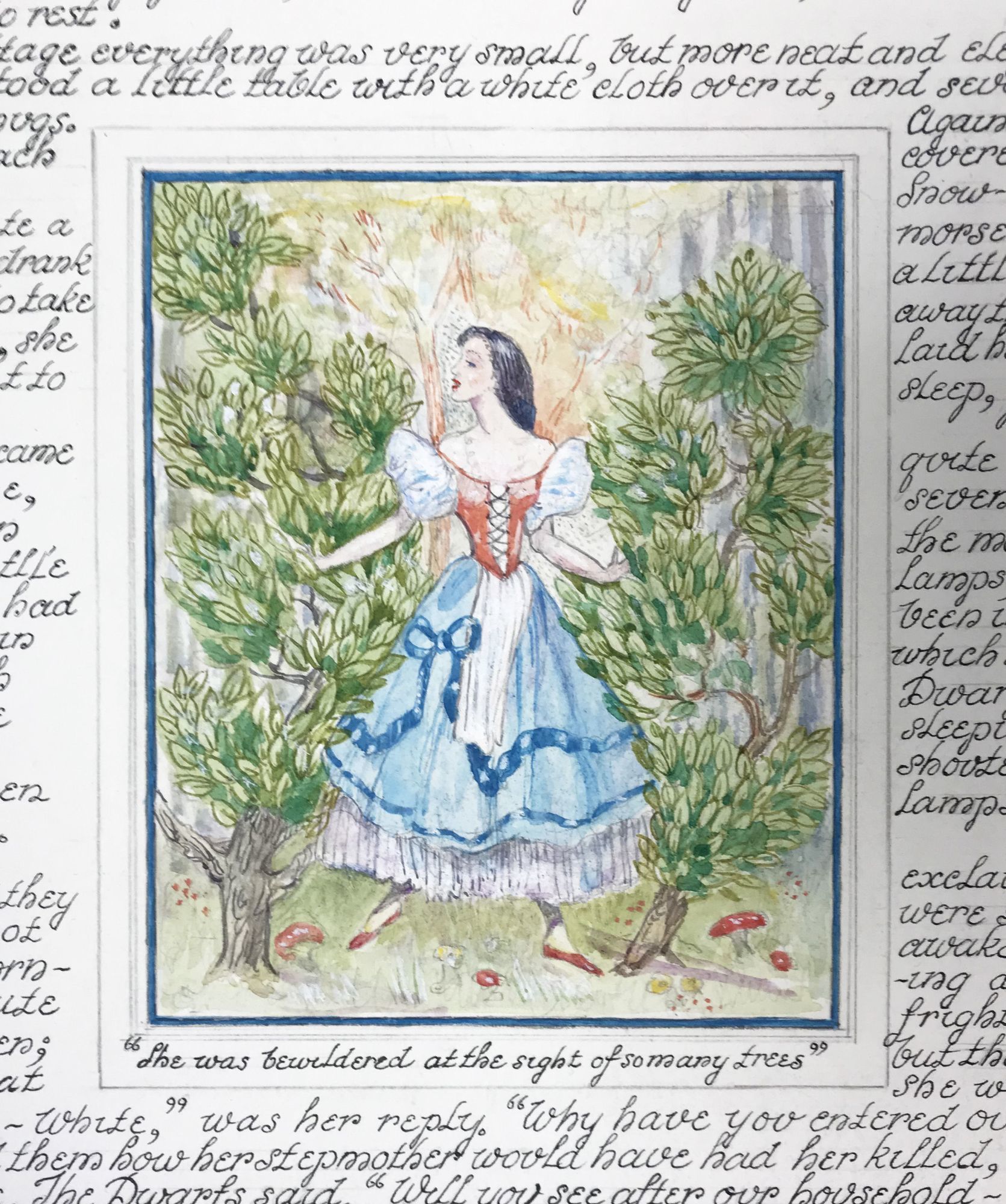 Fine Watercolor Pen & Ink -Snow White and the Seven Dwarfs