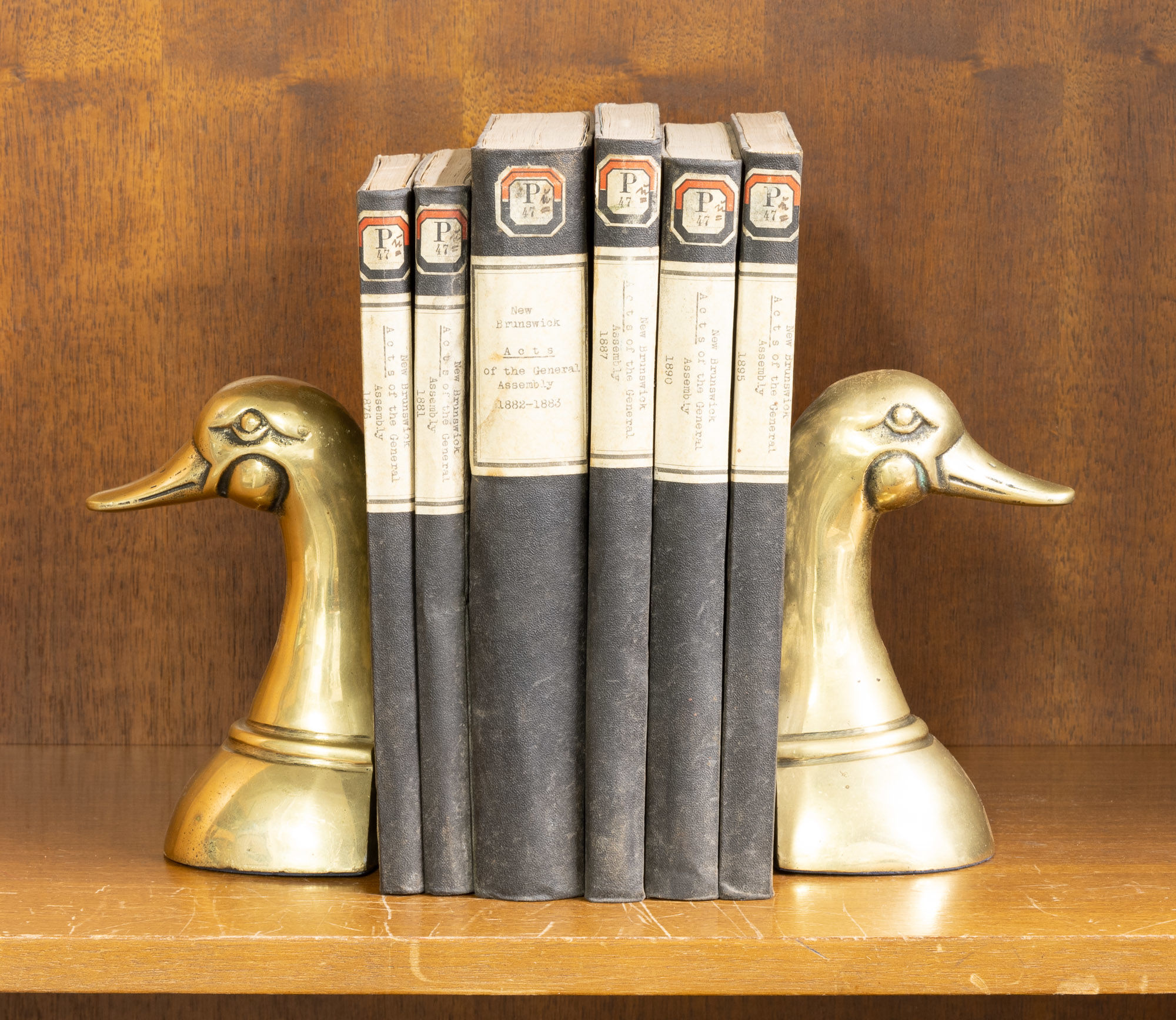 1876. New Brunswick. Acts of the General Assembly of Her Majesty's Province of New Brunswick [1876, 1881-83, 1887, 1890, 1895] Six books. Octavo (6" x 9"). Stab-stitched volumes with printed wrappers bound into contemporary quarter cloth over marbled boards, typewriiten paper title labels. Some shelfwear and soiling, internally clean. ex-library. Shelf location labels to spines, small stamps to title pages. $250. * Valuable for their insights into New Brunswick during the late nineteenth century, these volumes are from a series that commenced in 1786. Settled by the French, New Brunswick was taken by the British in 1759 and incorporated into the colony of Nova Scotia. Its population expanded significantly through an influx of Loyalists after the American Revolution. Its enlarged population and distance from Halifax, the capital of Nova Scotia, led the colonial administrators to establish New Brunswick as a separate colony in 1784. The first collection of New Brunswick acts, covering the years 1786-1805, was published in 1805. In 1867 New Brunswick was one of the six colonies that became the Canadian Confederation. Sweet & Maxwell, A Legal Bibliography of the British Commonwealth 3:78.