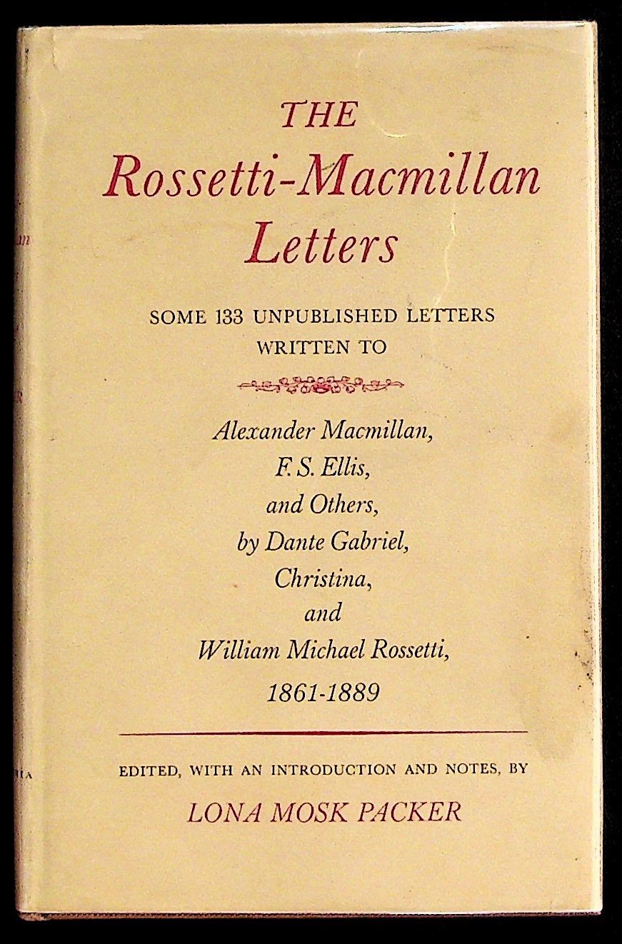 Berkeley: Univeristy of California Press and Cambridge University Press, 1963. Hardcover. Very good/Very Good. Hardcover. First Edition. Contains 154 letters; 133 of which were previously unpublished. 29 written by Dante Gabriel, 96 by Christina, and 26 by William Michael. Most are from the archives of Macmillan publishers in London. Alexander Macmillan was the primary publisher of Christina and also published two works by William Michael. Octavo, brown paper boards with title to spine, in brown dust jacket with red title to front and spine. Price-clipped and remaindered mark on bottom of pages. Some smudging and a slight tear at upper left front of dust jacket. 166 pages, including index. PRERAPH/050422.