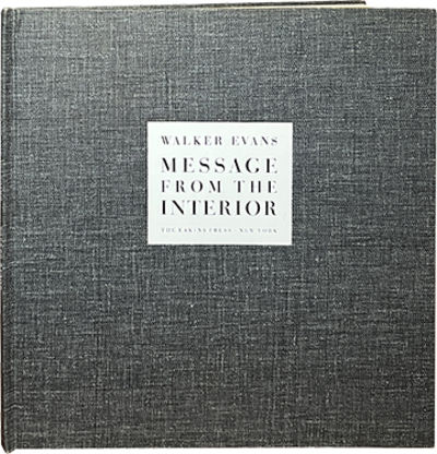 New York: The Eakins Press, 1966. First Edition. Hardcover. Near Fine. Near Fine, covered in the original glassine with some chips. Dark grey cloth with white ink lettering on the spine and a paste-down on the front panel. Square and firmly bound, onionskin paper protecting the photographs, clean internally. A collection of twelve Evans photographs that, according to John Szarkowski, "have helped define the American's sense of his past and his problem.