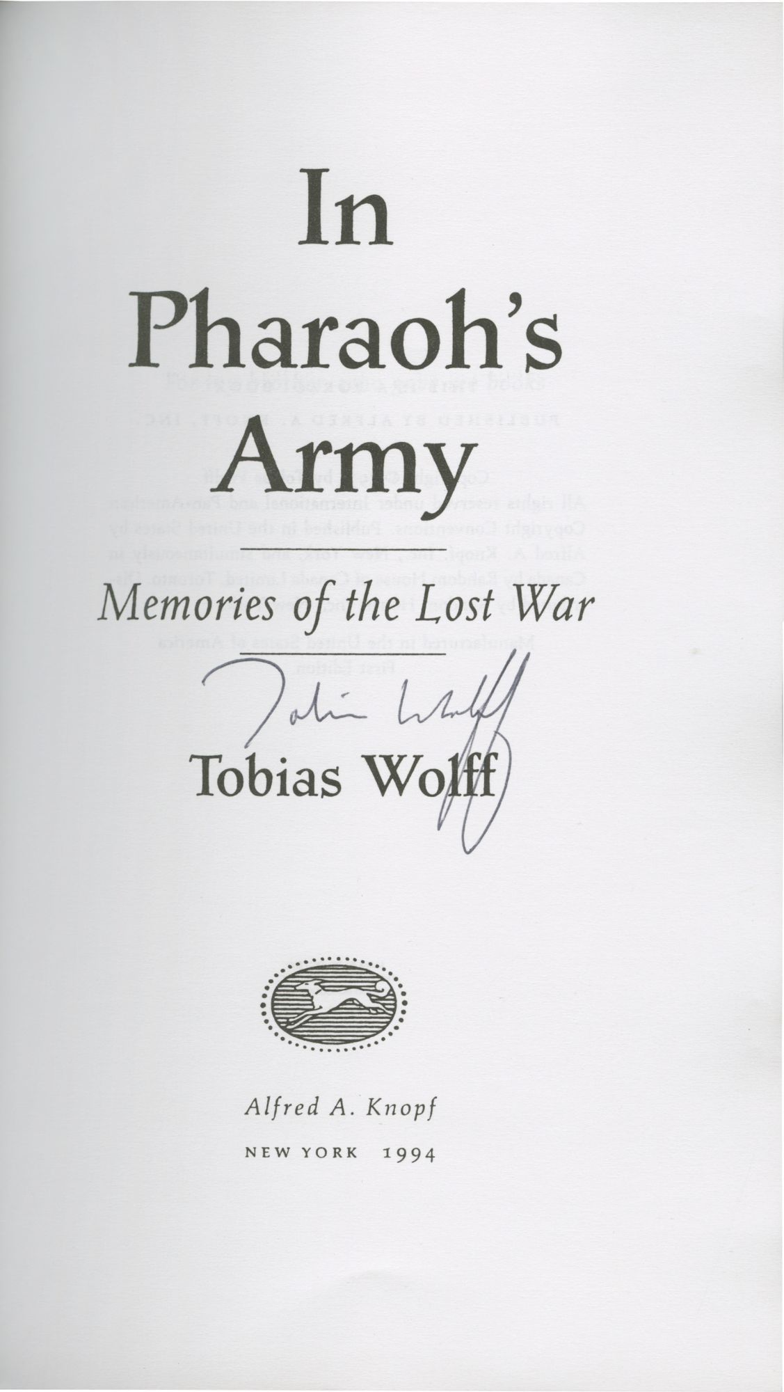 In Pharaoh's Army (Uncorrected Proof, signed by the author)
