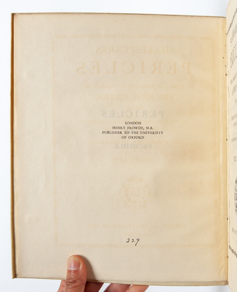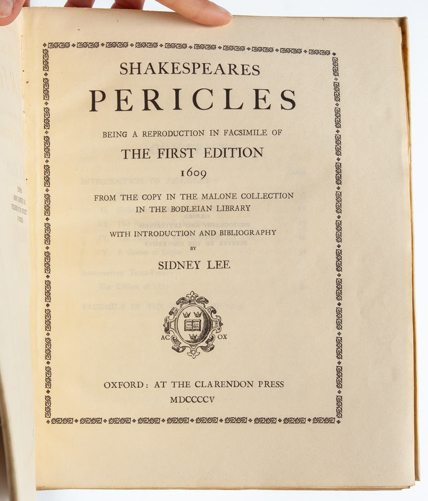 Shakespeares Pericles. Being a Reproduction in Facsimile of the First Edition, 1609