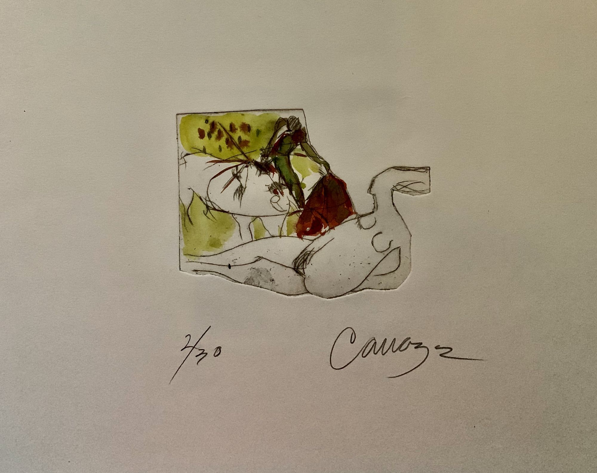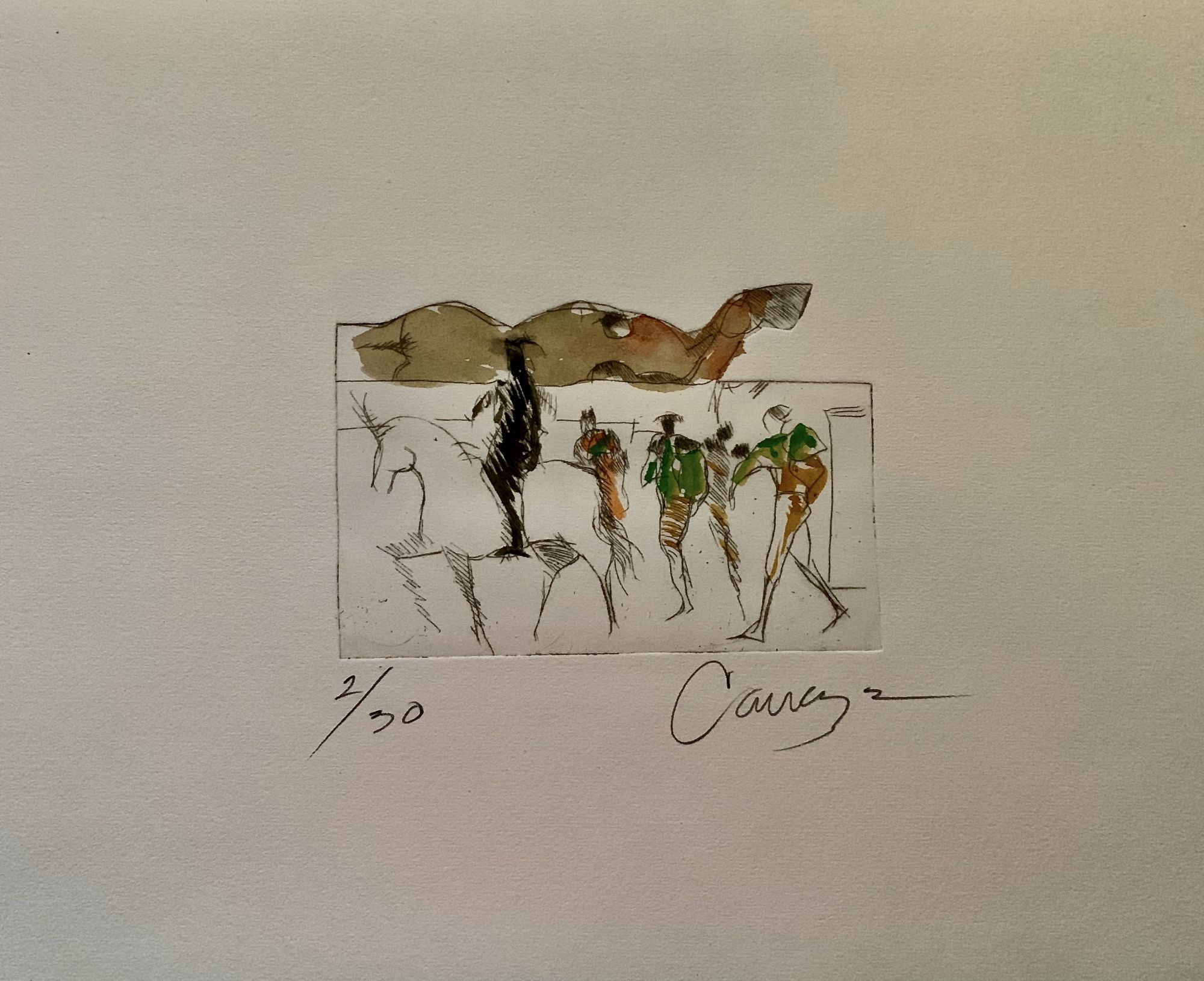 Madrid: Fernan Gomez Arte Y Ediciones, 1984. First edition. Hardcover. Orig. publisher red board portfolio. Fine. Cavazos, Alberto. 28.5 x 40 cm. One page of text by Pedro Beltran in Spanish explicating the images of "desnudas" (silhouettes of to naked women) with images of the bull ring to create a magical world. Born in Mexico, Cavazos is considered the Picasso of Mexico for the span of his work -- drawing, painting, etching and sculpture which depict fantasy themes. This limited edition contains nine original color etchings, 2 of 30 copies each signed by Cavazos in pencil. Page size same as cover with images in various dimension, approximately 14 x 9 cm: centered on heavy white stock. Not in OCLC.