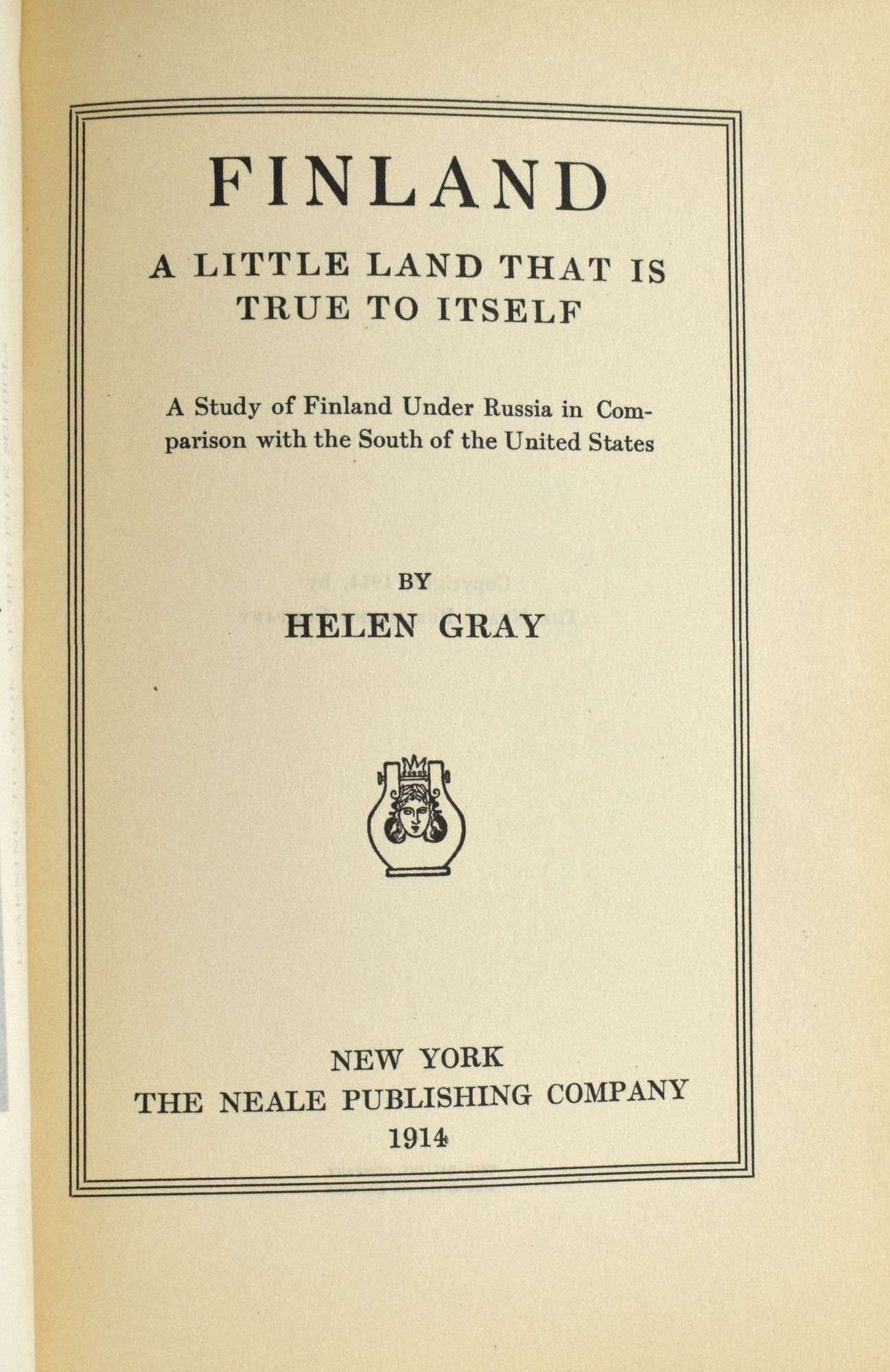 [NEALE IMPRINT] [TRAVEL] FINLAND: A LITTLE LAND THAT IS TRUE TO ITSELF. A STUDY OF FINLAND UNDER RUSSIA IN COMPARISTON WITH THE SOUTH OF THE UNITED STATES