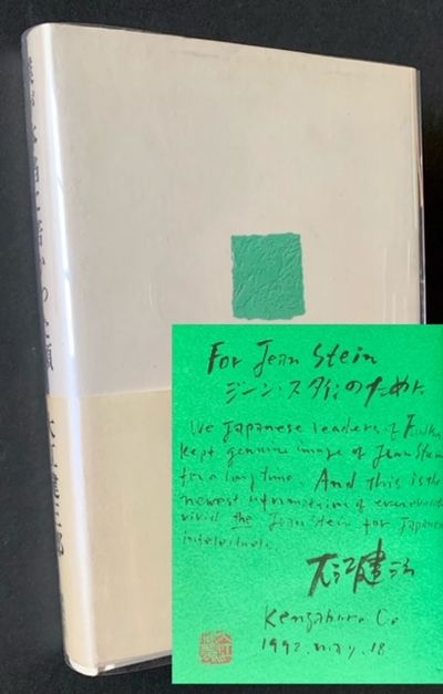 Japan, 1992. Cloth. Fine/Fine. INSCRIBED BY KENZABURO OE TO JEAN STEIN (AUTHOR OF "EDIE: AN AMERICAN GIRL") IN YEAR-OF-PUBLICATION. An all-but-pristine copy to boot of the genuine 1992 1st edition, published in its native Japanese. Clean and Fine in a crisp, Fine dustjacket AND a Near Fine example of the publisher's printed obi (wraparound band) hugging the dustjacket. A nice example from the canon of this future Nobel Prize winner (1994) and very uncommon as such.