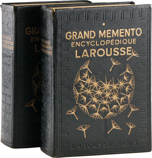 Paris: Librairie Larousse, 1936-37. First Edition. Quarto (30cm). Two volumes in black leatherette, stamped in gilt and blind; green and taupe patterned endpapers; vol. I: viii,1048pp; vol. II: [iv],1096pp; color maps, full-page color illustrations laid down on inserted leaves, and black and white illustrations throughout. Bookplates of noted zoologist James G. Mead, Curator Emeritus of Marine Mammals at the Smithsonian. Straight and largely clean, with small splits starting in joints at head and tail, minor dampstain to top edge of vol. II not affecting text, but nevertheless an appealing set: around Very Good.