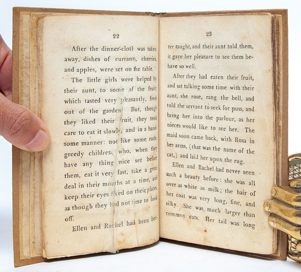 Old enough to be sent for daily visits to their Aunt, little Ellen and Rachel discover the joys of spending time with a generous and knowledgeable woman. Day by day, the two girls learn about the structure of flowers, the origin of Chinaware, and the caretaking of cats and pet birds. Over time, their aunt increases the complexity of her lessons. In addition to showing the girls how her livestock is raised and her property is managed, she also provides social lessons. Introducing Ellen and Rachel to her servants Isaac and Nancy, the Aunt urges the girls to understand their own economic privileges; for while Isaac and Nancy praise the generosity of their employer, they acknowledge that caretaking for their daughter Betsy and her seven children causes strain. Though the Aunt asserts that she ensures that all of her employees want for nothing, she allows the story to conclude with no additional offers of assistance to her longtime workers. Adult readers learn bit by bit that the generous Aunt, in fact, enjoys being perceived as generous; and near the book's conclusion she narrates the story of a young man Tom, whom she discovered being abused by the man who kidnapped him from the West Indies and enslaved him. Purchasing Tom's freedom on the spot, it does not occur to the Aunt to consult Tom about his wishes or to attempt reuniting him with family; rather, the Aunt places Tom into paid servitude to a family friend.