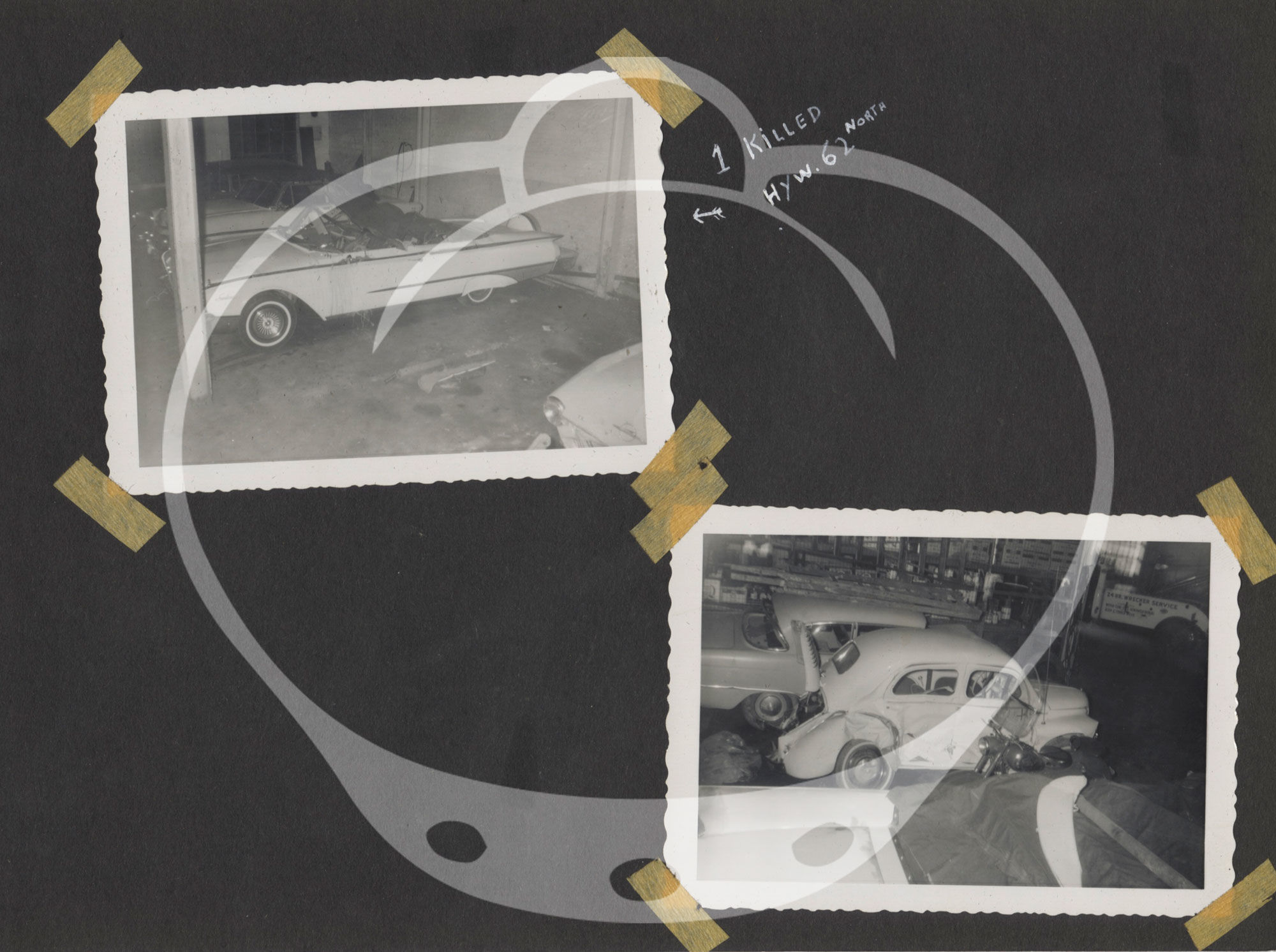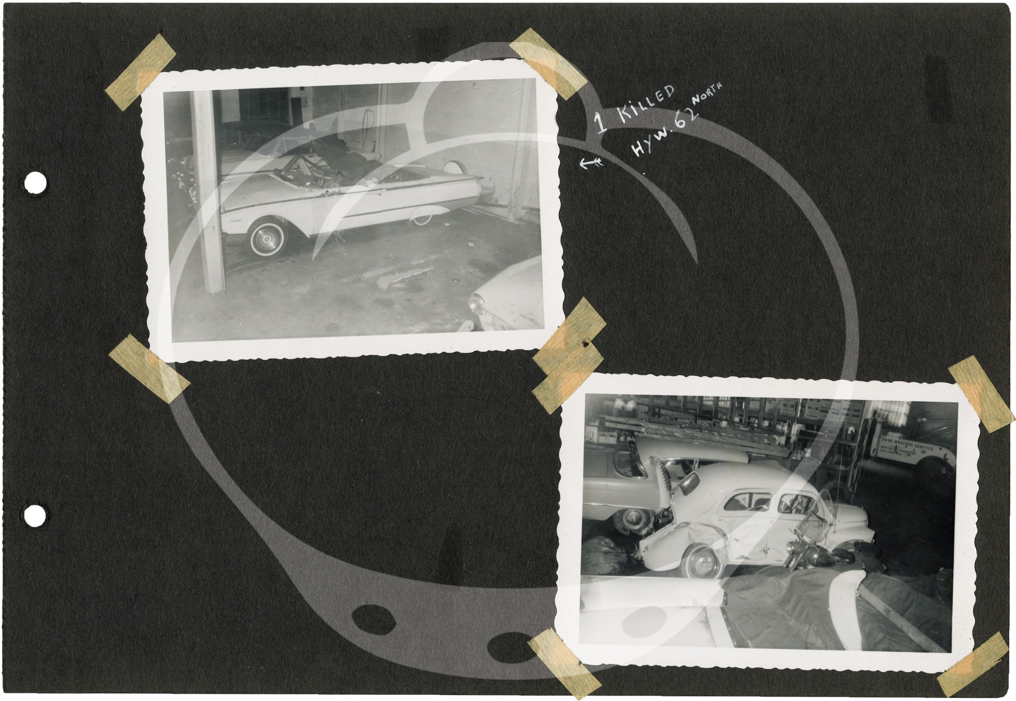 Archive of photographs, newspaper clippings, and ephemera regarding automobiles and automobile accidents, 1963-1966