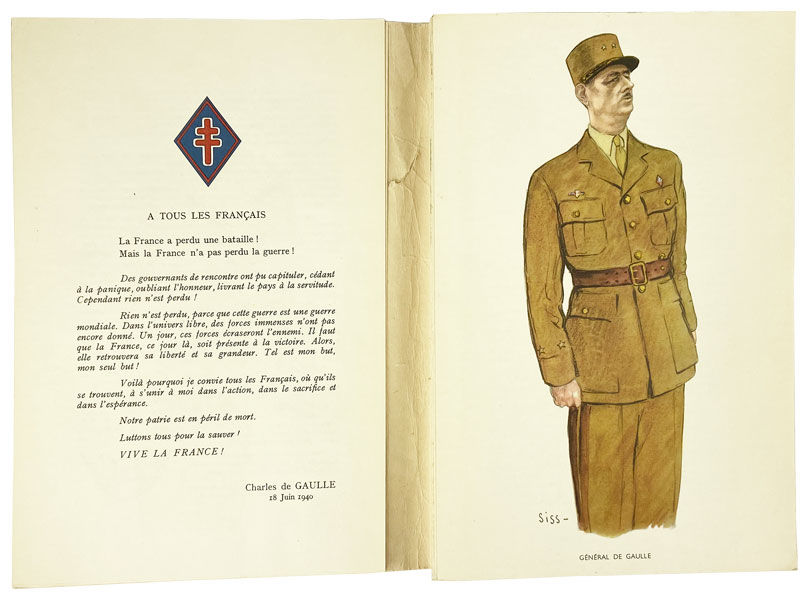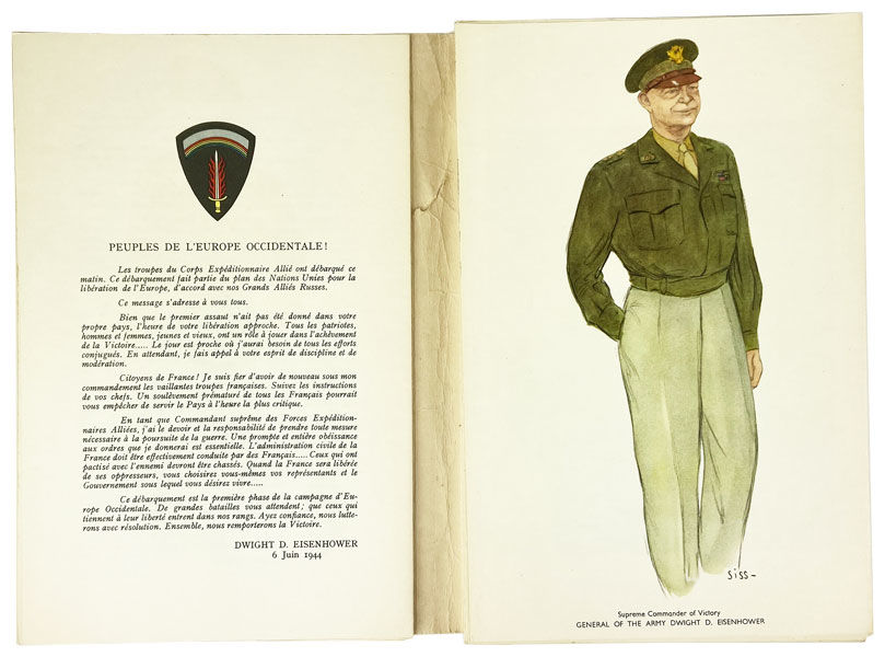Portfolio of seventy (70) aquarelles of military scenes and portraits of major figures, including Charles de Gaulle and Dwight D. Eisenhower.