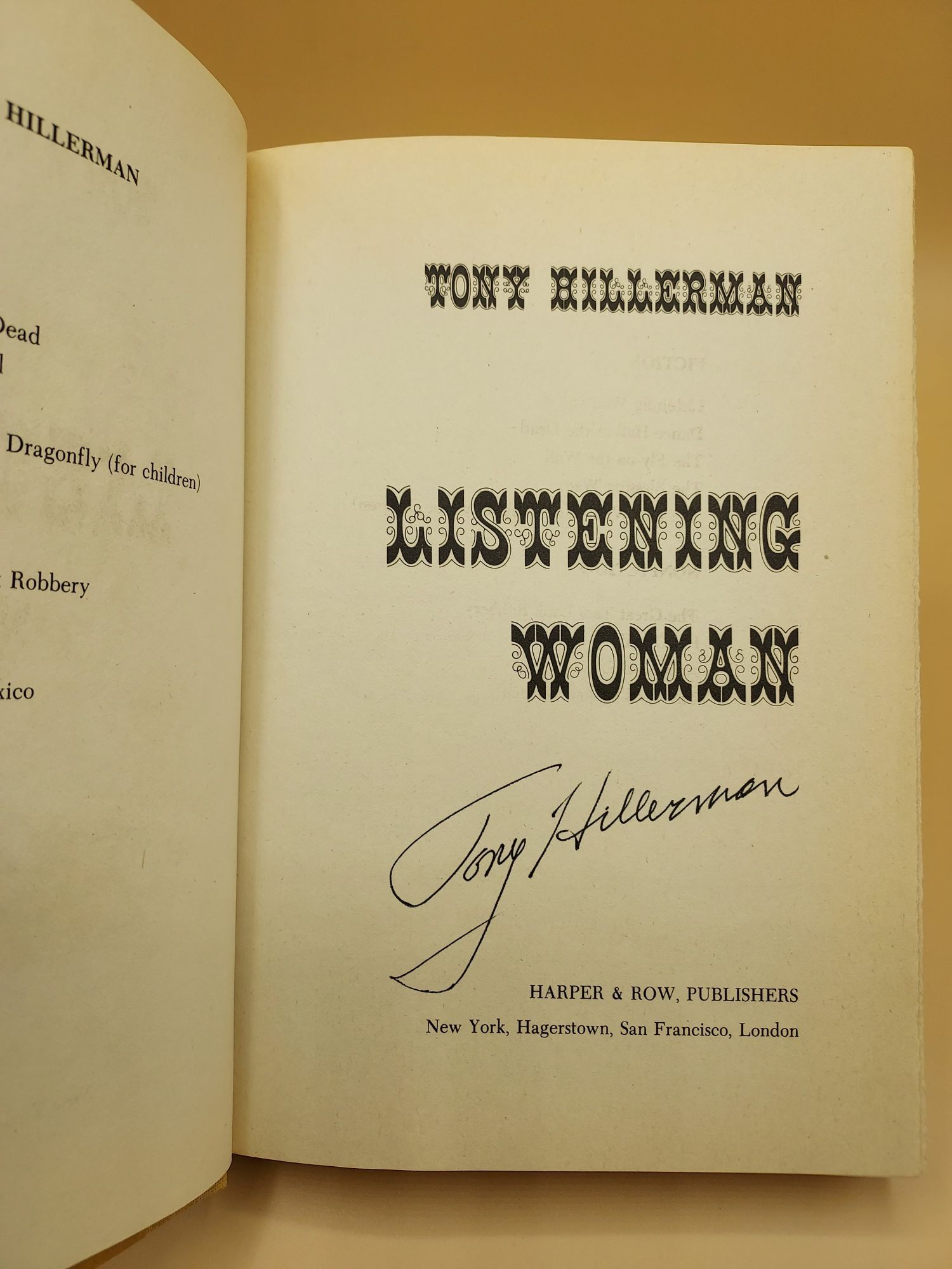 New York: Harper & Row, Publishers (Buffalo Medicine Press), 1978. First edition; A Buffalo Medicine Edition. Hardcover. Very good +/very good. SIGNED. 200pp. Octavo [21 cm] 1/4 tan cloth with matching paper covered boards. Publisher's endpapers printed in black and white. Very subtle edge wear to the spine and covers. A previous owner has stamped "A Joan Kahn Book" within the original illustration by Ernest Franklin. In a very attractive dust jacket, with very subtle sunning to the spine. The third novel in the Jim Chee and Joe Leaphorn series. Signed by Tony Hillerman on the tipped-in title page in black pen.