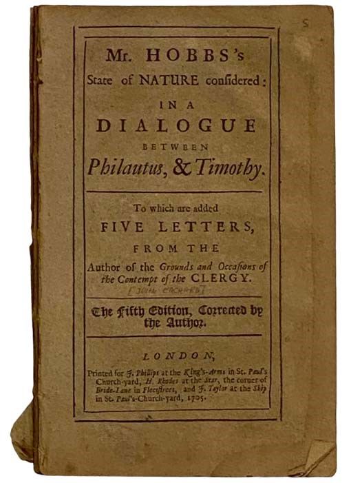 Mr. Hobbs's State of Nature Considered: in a Dialogue between Philautus, & Timothy. to which are added Five Letters from the Author of the Grounds and Occasions of the Contempt of the Clergy. [Thomas Hobbes]