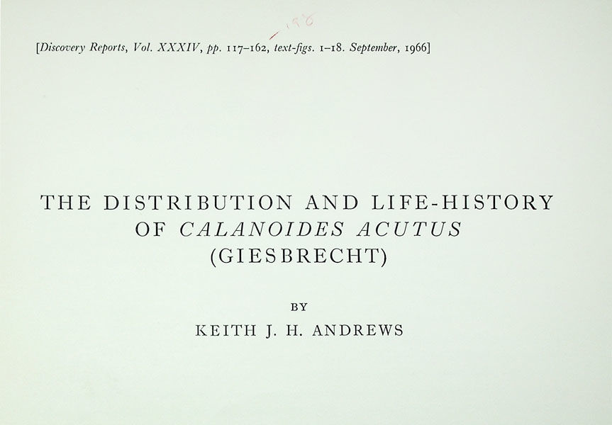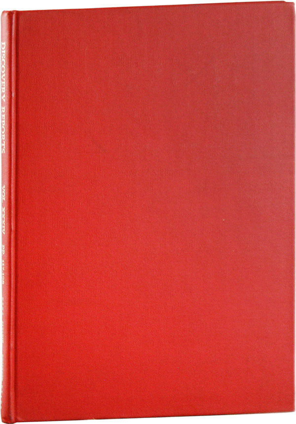 [Discovery Reports], 1966. Folio (31cm). Red buckram, with gilt spine title; [117]-197,[1]pp; black and white diagrams. Bookplate of noted zoologist James G. Mead, Curator Emeritus of Marine Mammals at the Smithsonian Institution. Straight and sound, though rebound: Very Good.