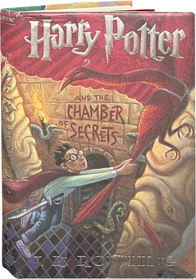 New York: Arthur A. Levine Books, 1999. Hardcover. Very Good/Very Good. Second Printing. Very Good in a Very Good jacket, first issue without the year on the spine, unclipped ($17.95), lightly rubbed and bumped at the top edge, black ink stains on the back panel. Quarter green buckram with blue paper on the boards. Firmly bound with a slight forward lean, a crease to the front endpaper, clean otherwise. The second book in Rowling's world-renowned Harry Potter series.