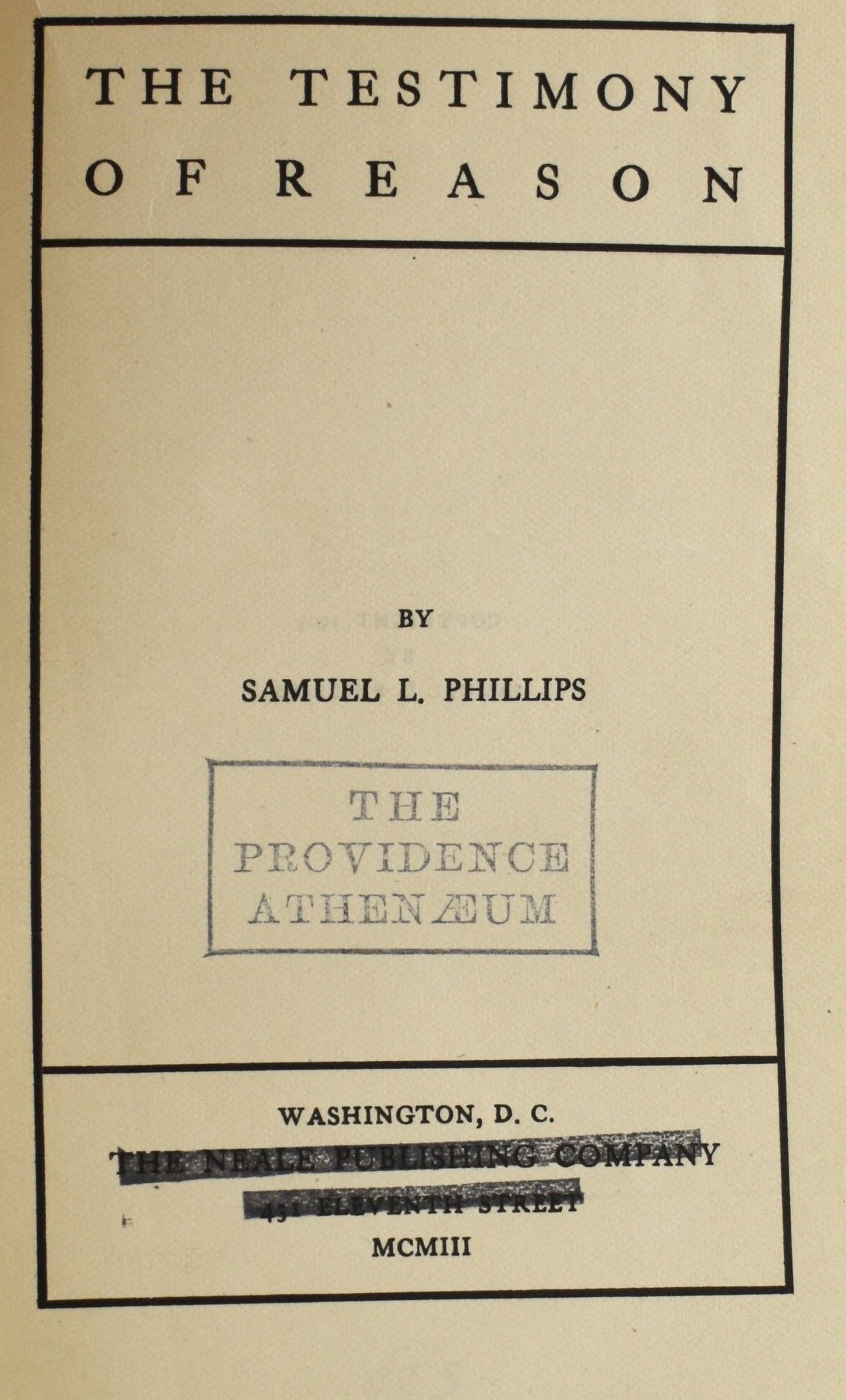 [NEALE IMPRINT] THE TESTIMONY OF REASON