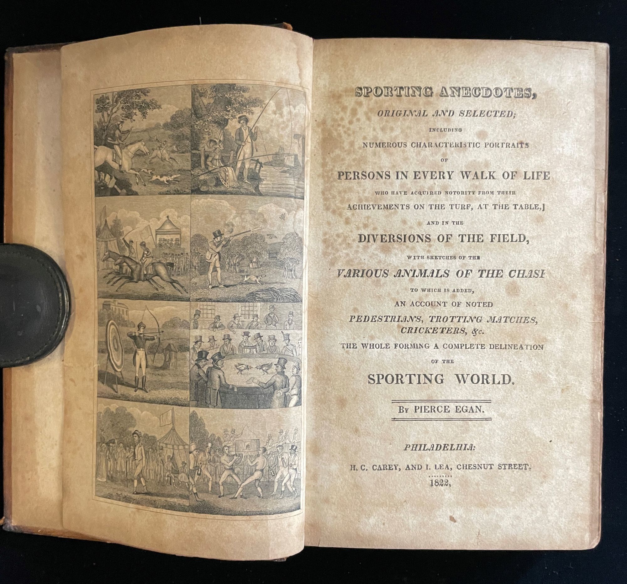 Philadelphia: H. C. Carey and I. Lea, 1822. 1st US Edition. Hardcover. VG-. Presumed first American edition after the first edition (London, 1820). iv, 359. Frontispiece with 8 compartments of engravings showing: jumping, fishing, racing, shooting, archery, cockfighting, (unidentifiable sport) and boxing. Old, tree calf, half of black spine label chipped away, internals darkened throughout with obvious foxing. Solid binding. An unsophisticated version of the first American edition, which, though not uncommon in university collections, is not as commonly seen in trade as its British copies.