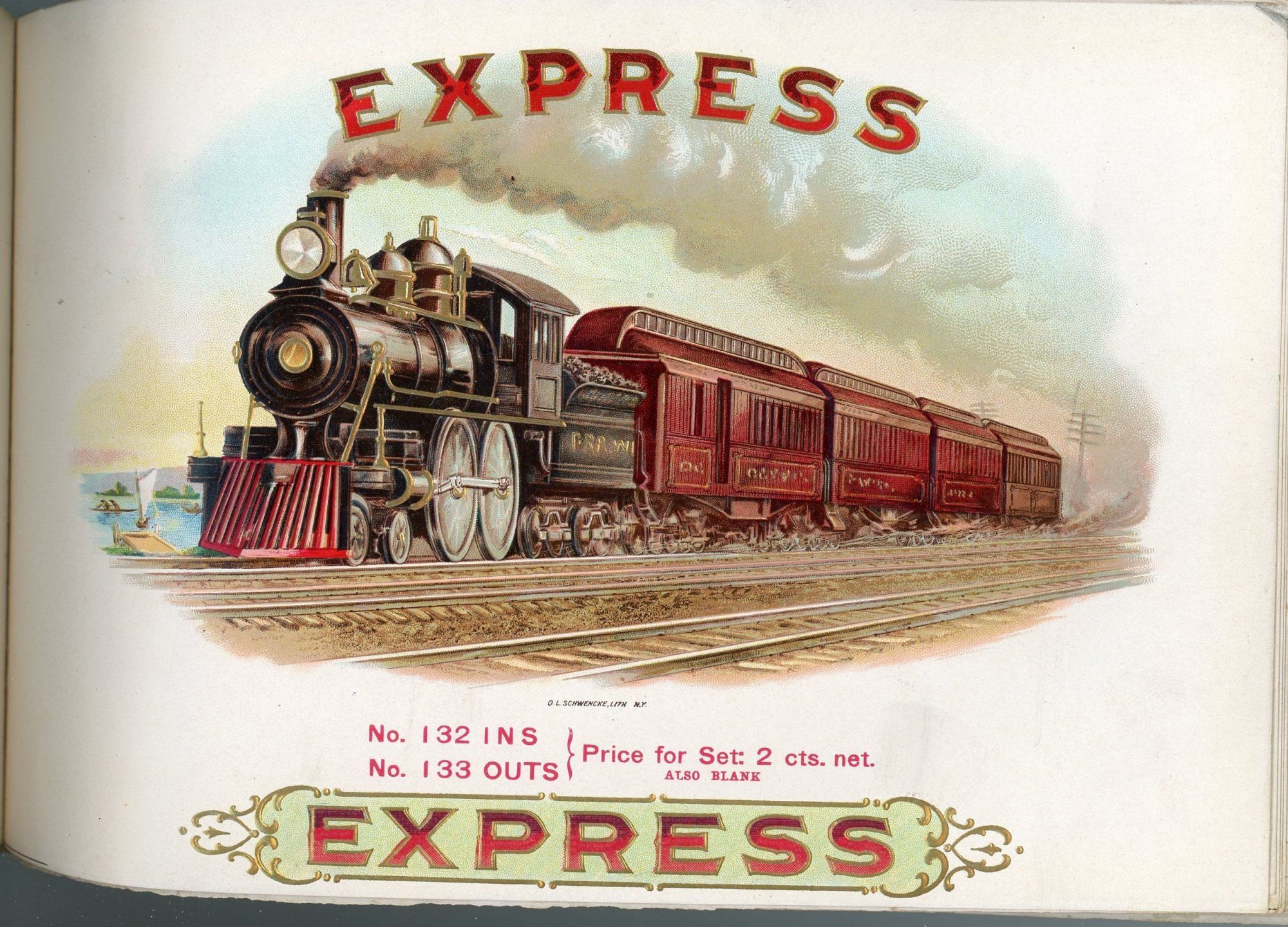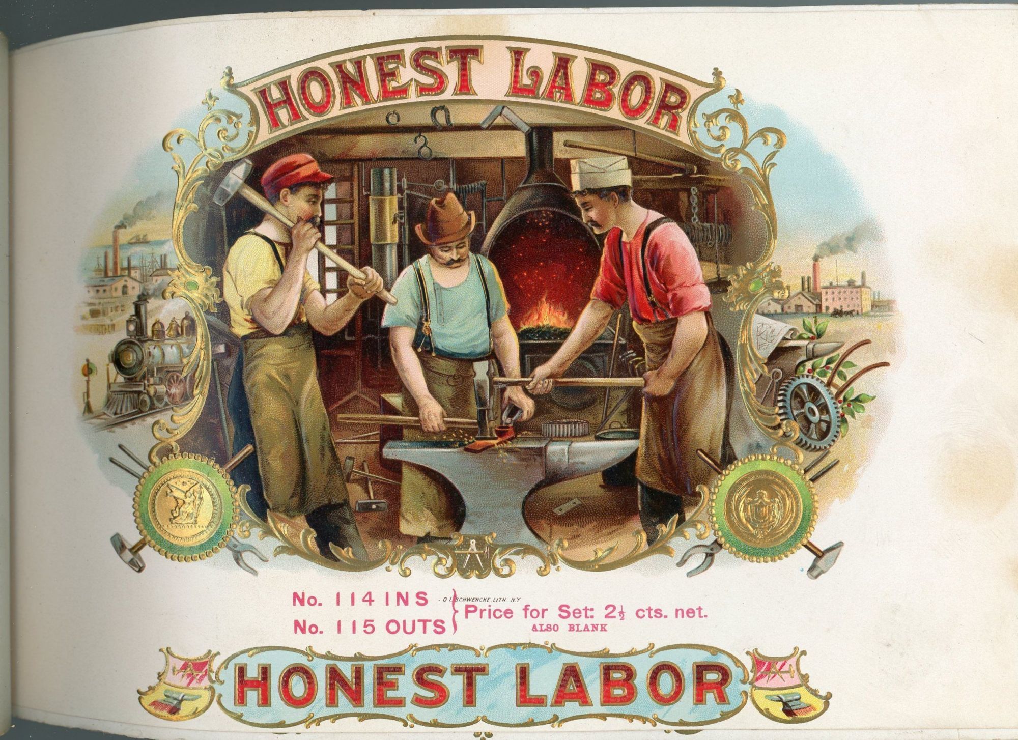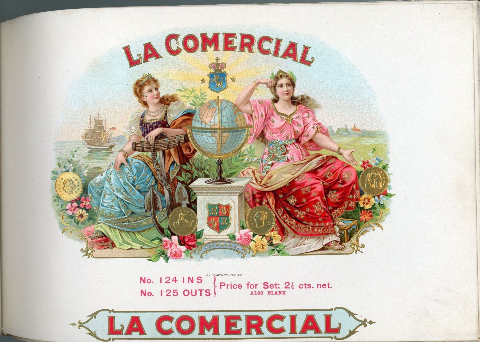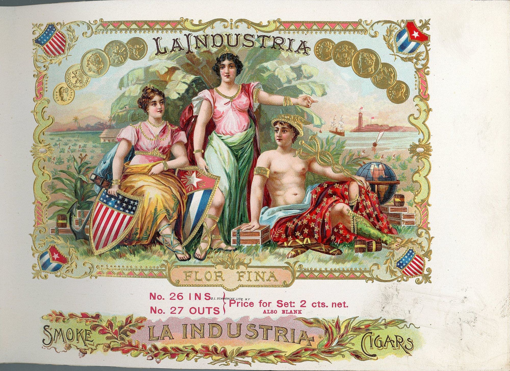 New York & Chicago: O. L. Schwencke, 1907. Cover wear. A 66 pp. salesman sample of deeply embossed gilt embellished cigar labels produced by O. L. Schwencke. Elaborate and intricately designed. Elegant women, royalty, spotted trout, privileged gentlemen, road houses, cigarette in progress (silver ash), scenes from nature, Indigenous peoples , Cuba, Puerto Rica, Transportation and much more. Each with a label number and pricing information. Measures 6.5 by 9.75 inches. Gilt stamped boards. Only Schwenke and Schlegel were the only two independent cigar label printers who stayed independent from the American Lithographing Company. Schwenke was an important producer of elaborate embossed chromolithographed cigar box labels.