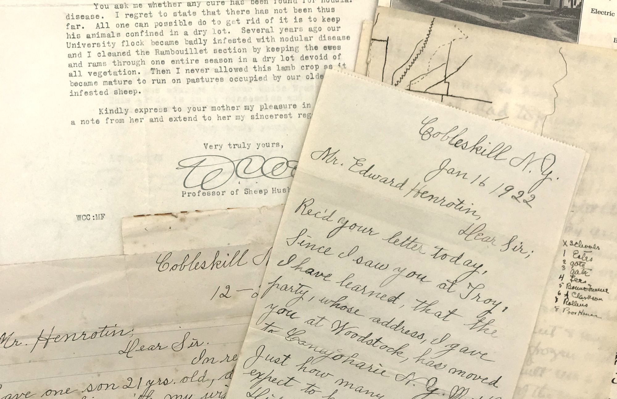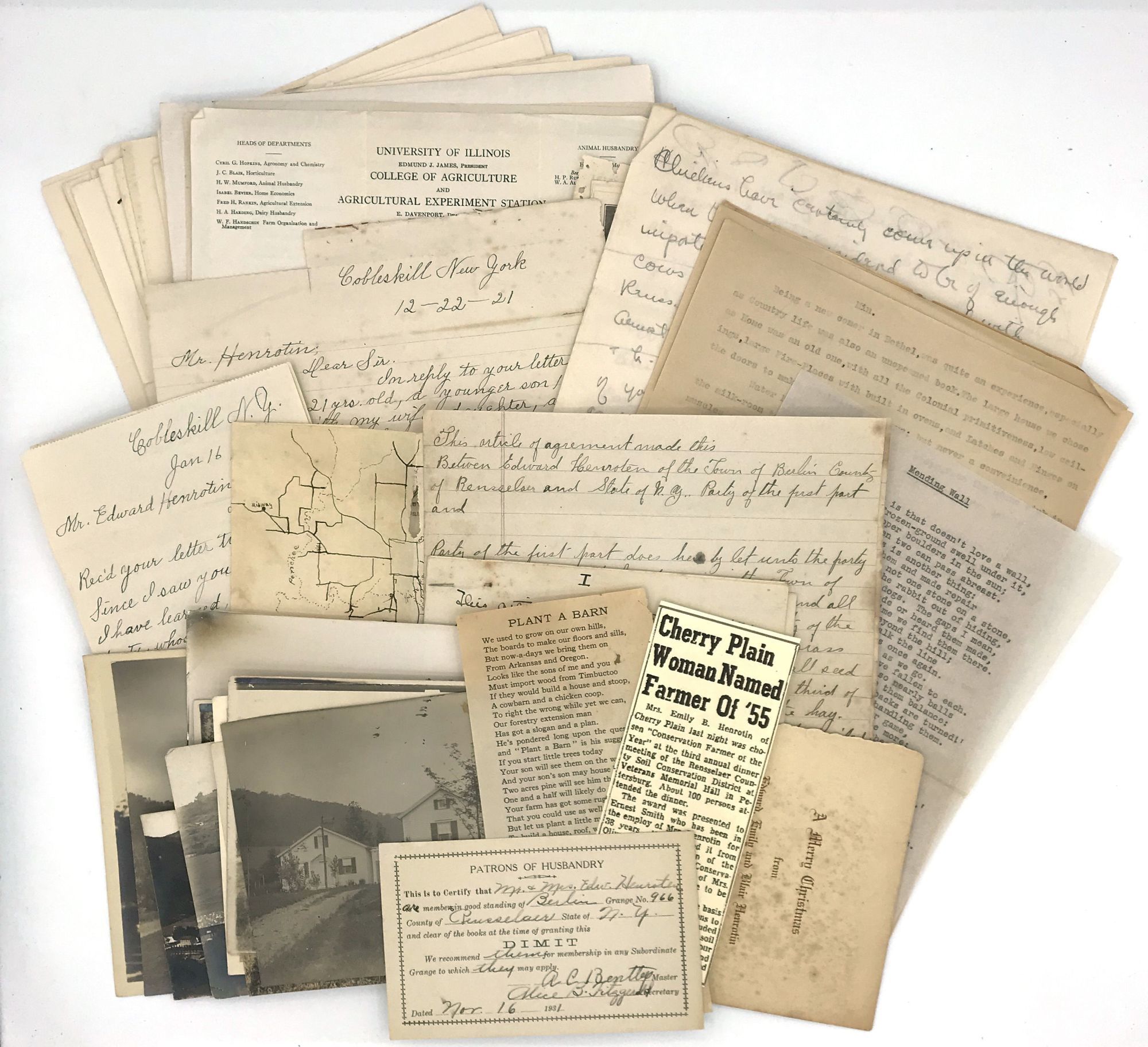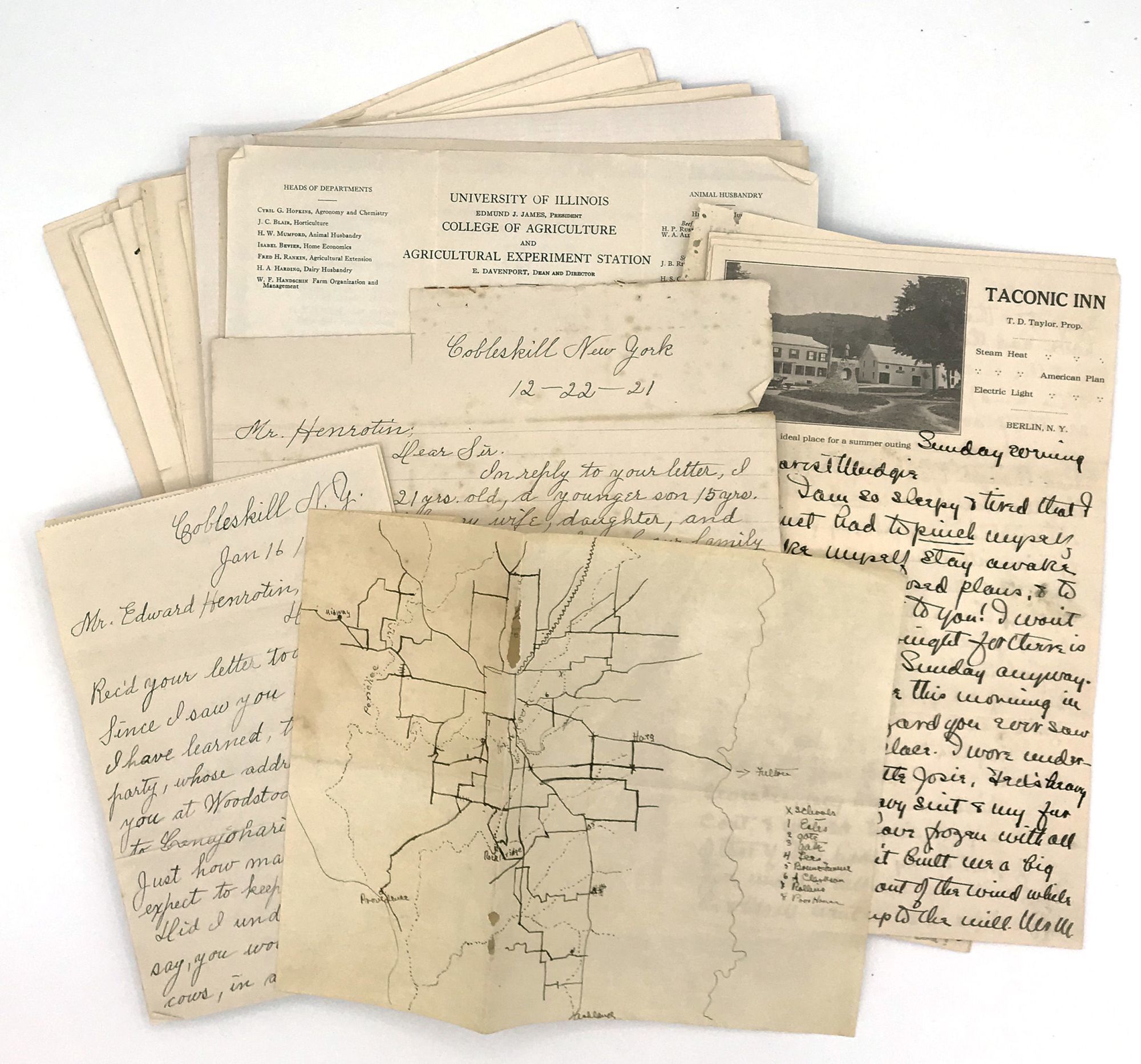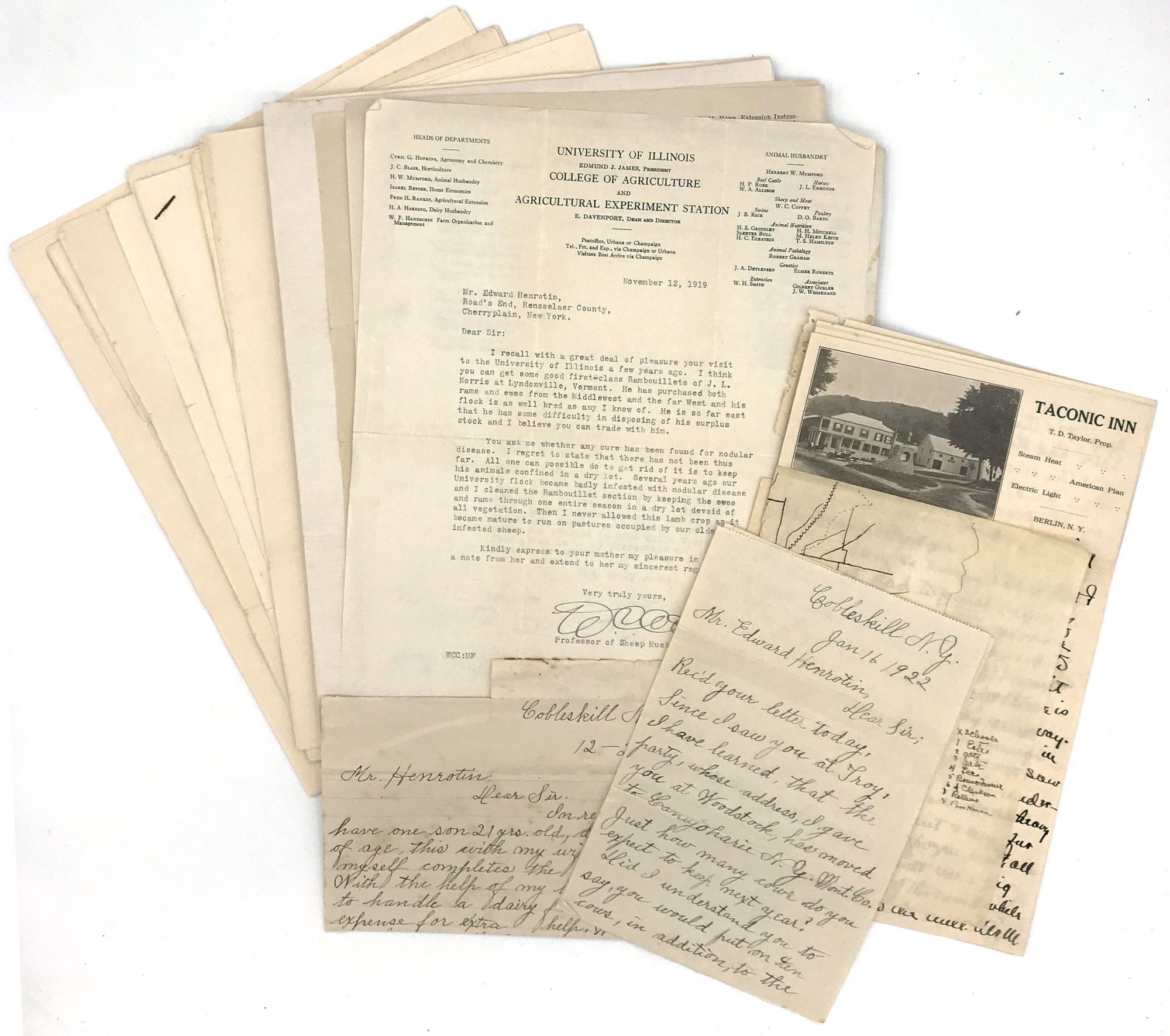 Berlin, New York, 1931. A remarkable archive of material belonging to Edward C. (b.1872) and Emily (b.1884) Henrotin, farmers active in Rensselaer County, New York, in the 1920s. Emily was an active conservationist, and one of the first women to be recognized in her field; her husband Edward was equally well-respected in agricultural circles. Correspondence, photographs, newspaper clippings, and memoir material is represented. The archive paints a picture of a hard working family's contributions to agricultural science and conservation in America c.1920s.