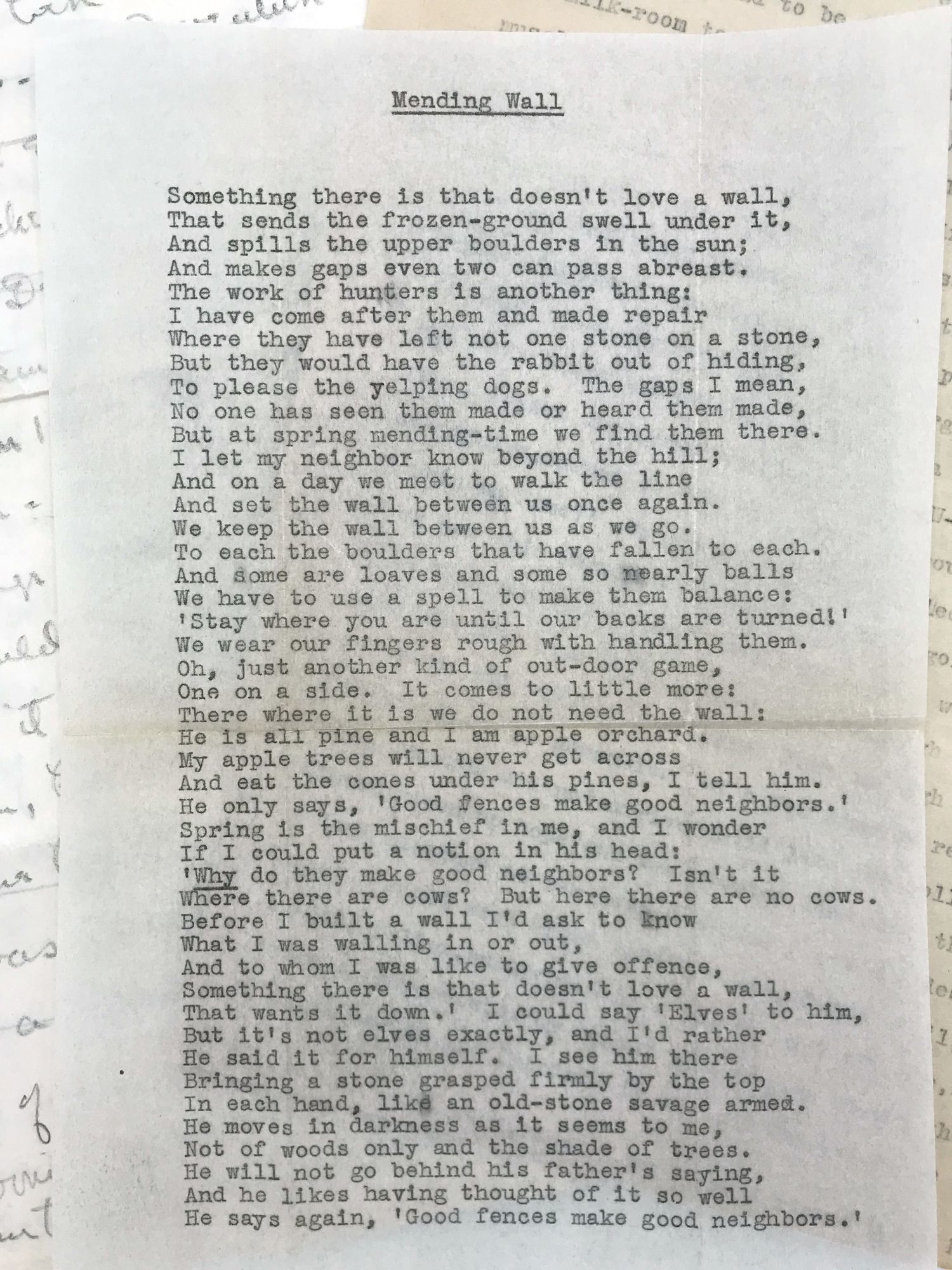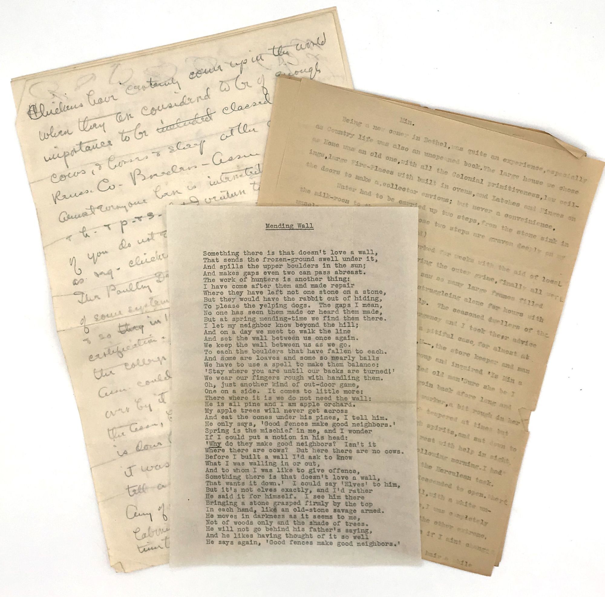 Original typewritten and manuscript memoir material (8.5" by 11", [14] pp), apparently by Emily, detailing her life experiences, as well as one leaf with a poem titled "Mending Wall" measuring 9" by 6.5". Berlin, 1930s.